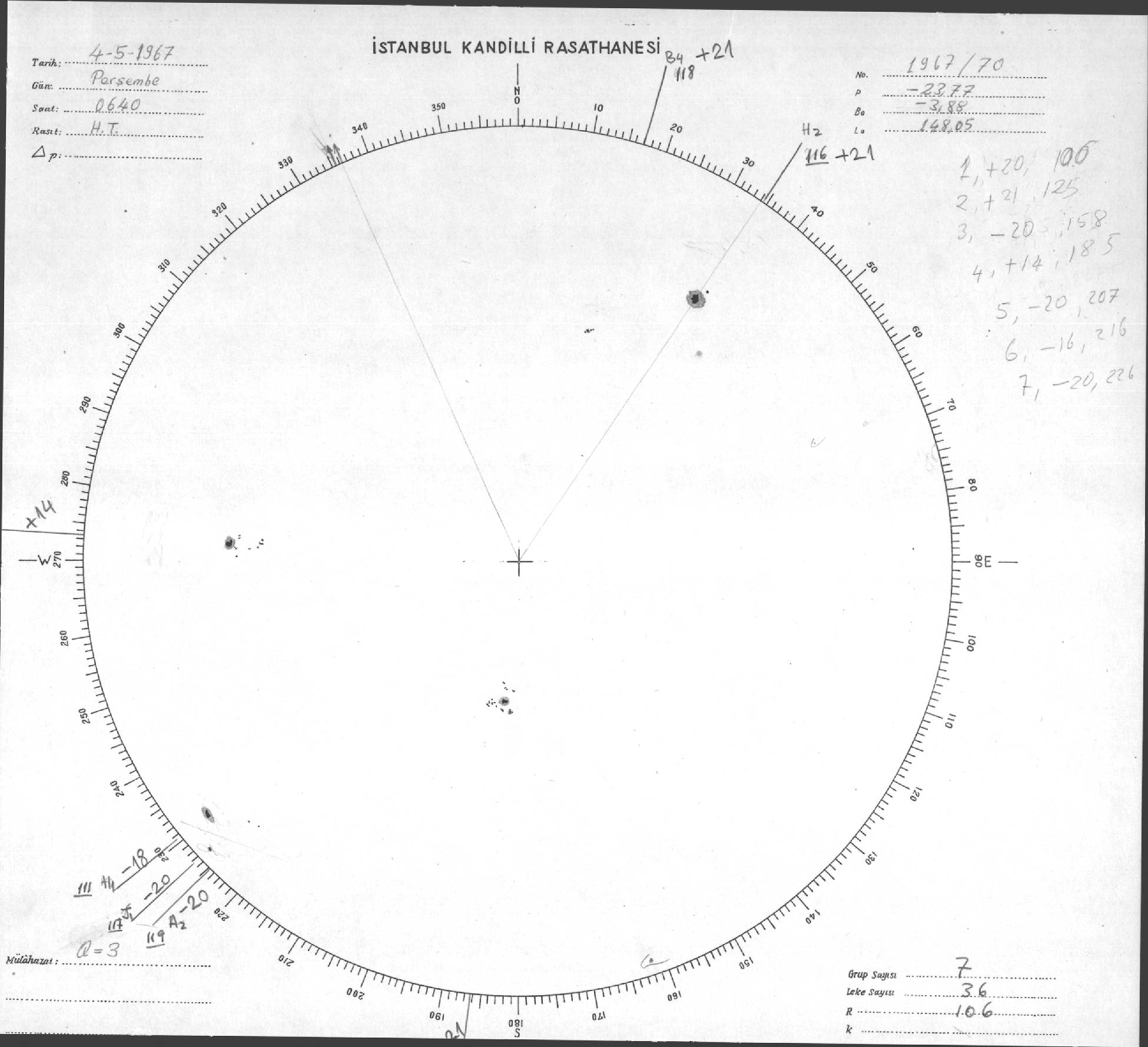Güneş Lekesi Çizimi - 04.05.1967