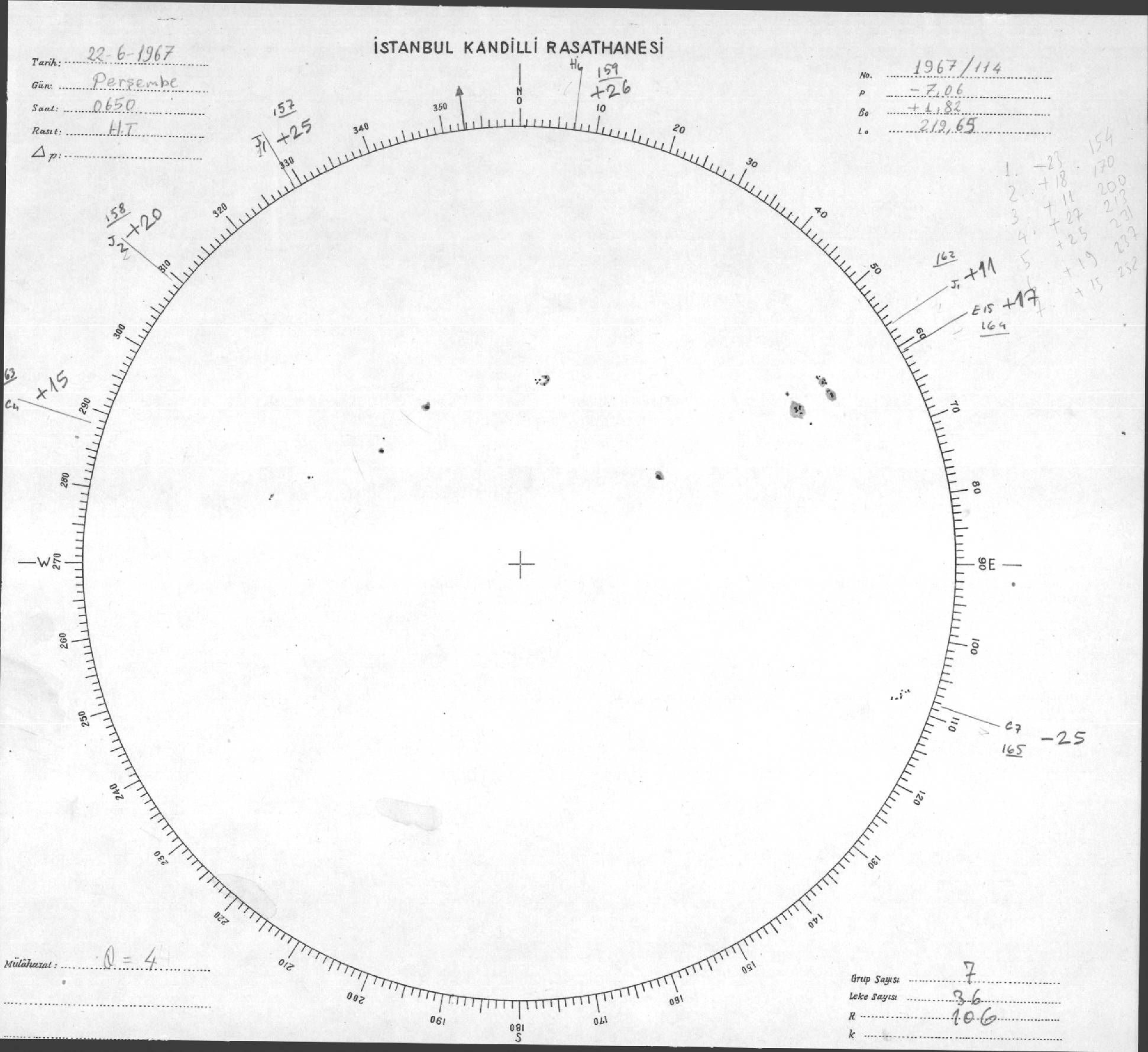 Güneş Lekesi Çizimi - 22.06.1967