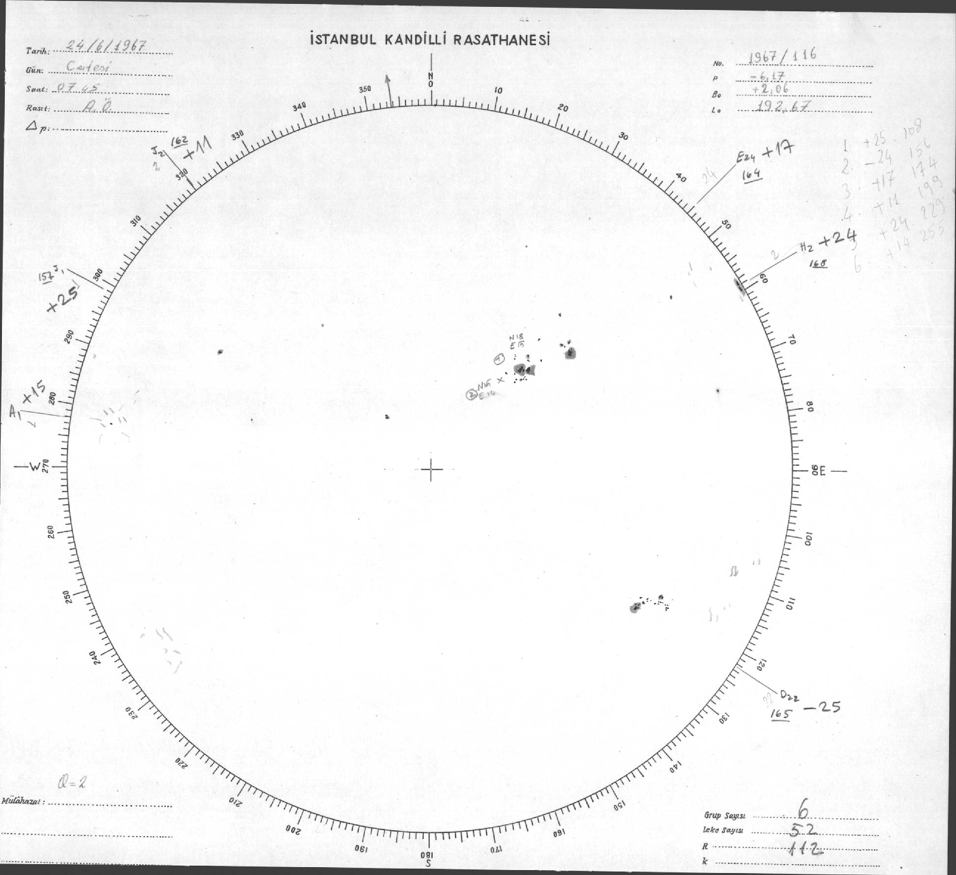 Güneş Lekesi Çizimi - 24.06.1967