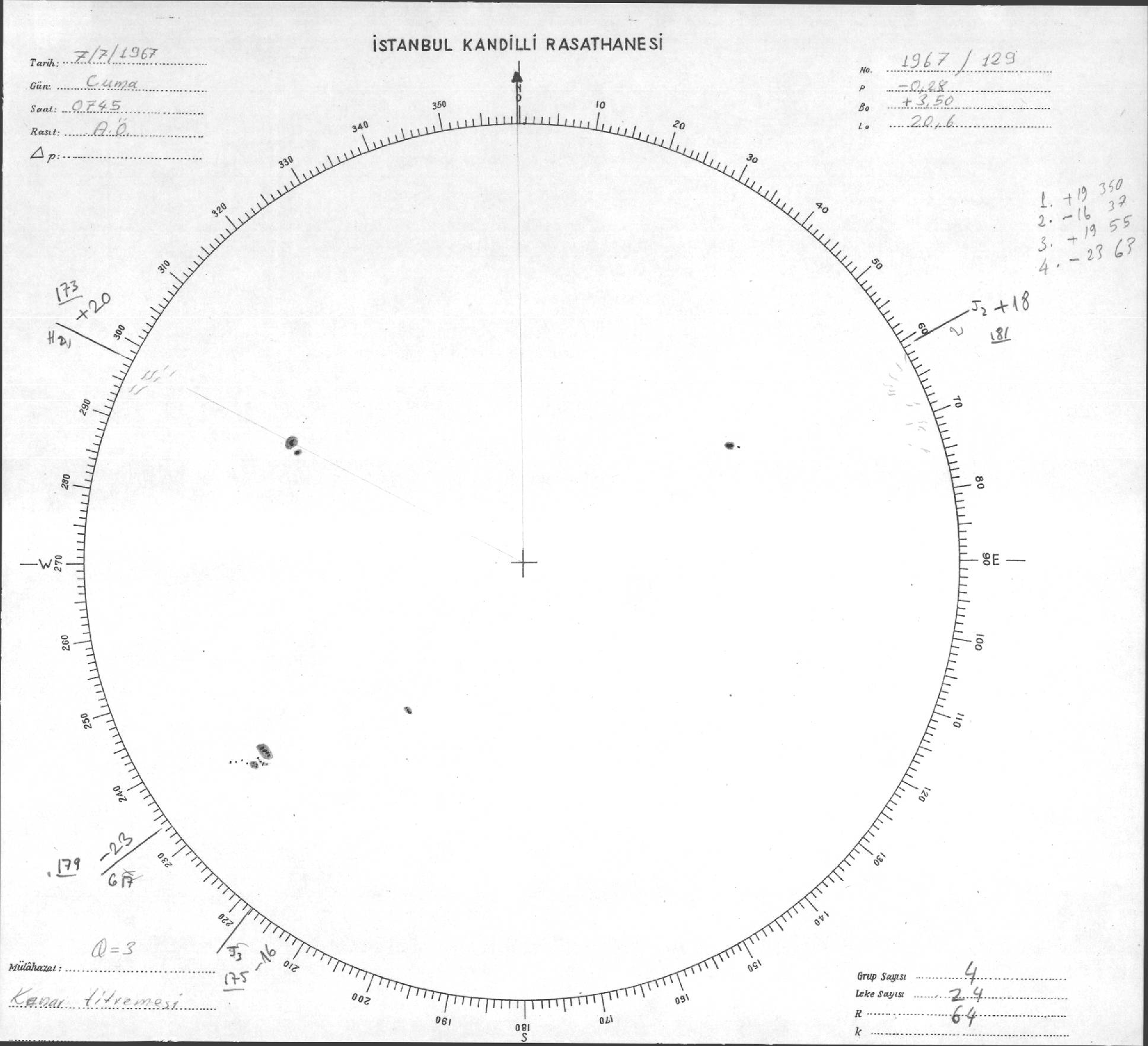 Güneş Lekesi Çizimi - 07.07.1967