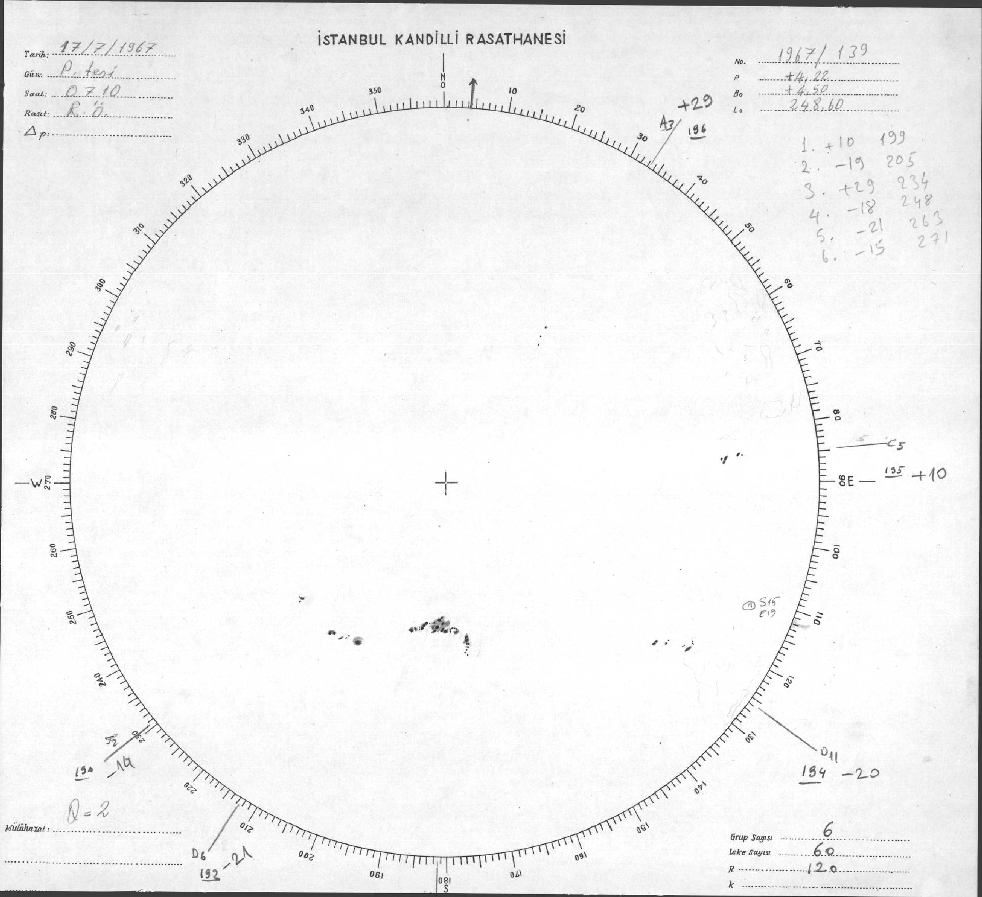 Güneş Lekesi Çizimi - 17.07.1967