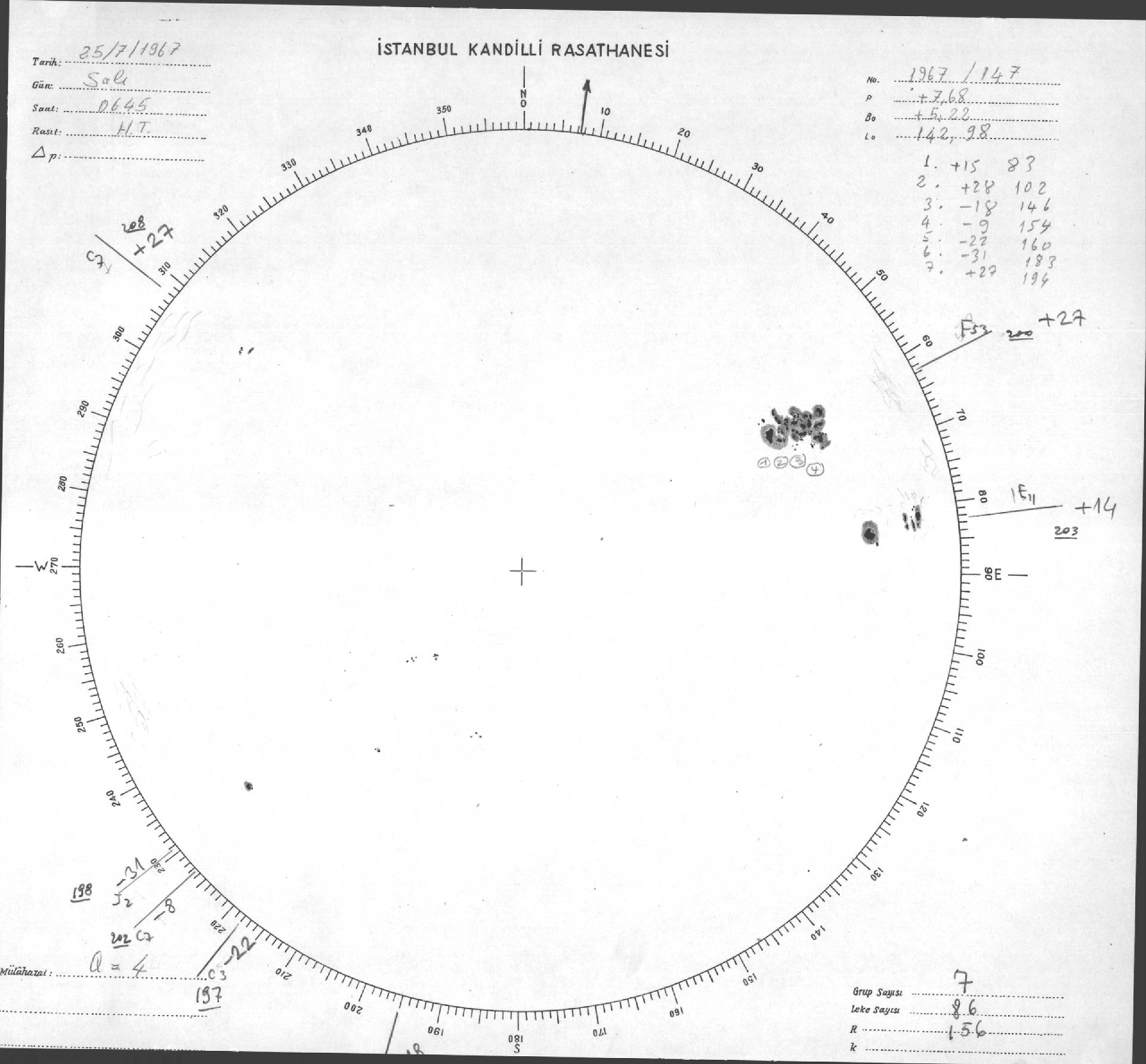 Güneş Lekesi Çizimi - 25.07.1967