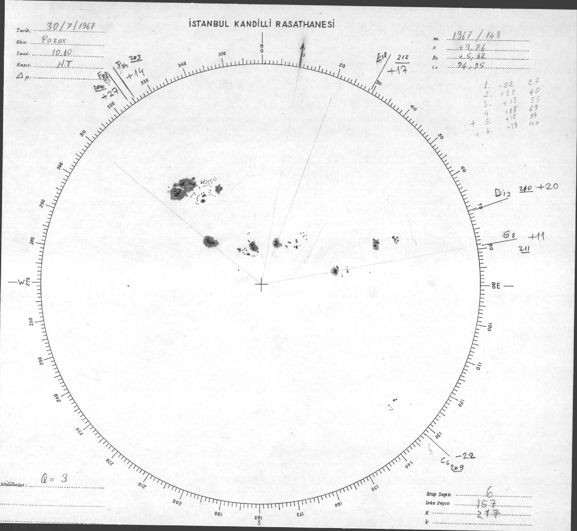 Güneş Lekesi Çizimi - 30.07.1967