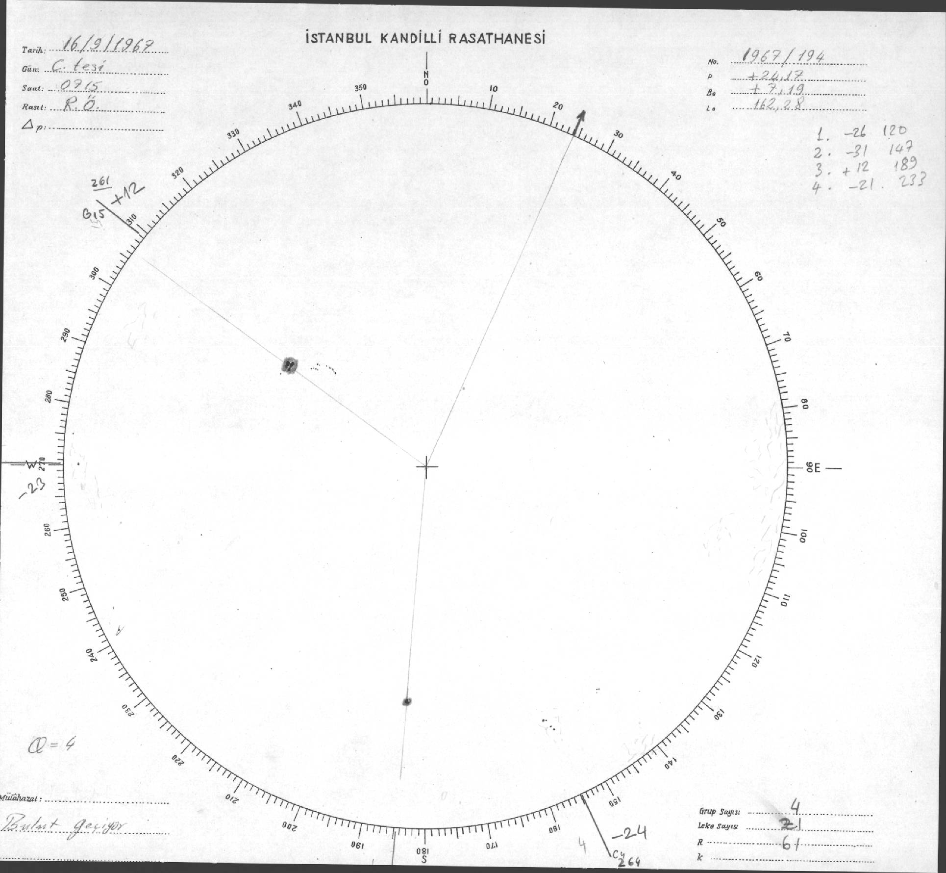 Güneş Lekesi Çizimi - 16.09.1967