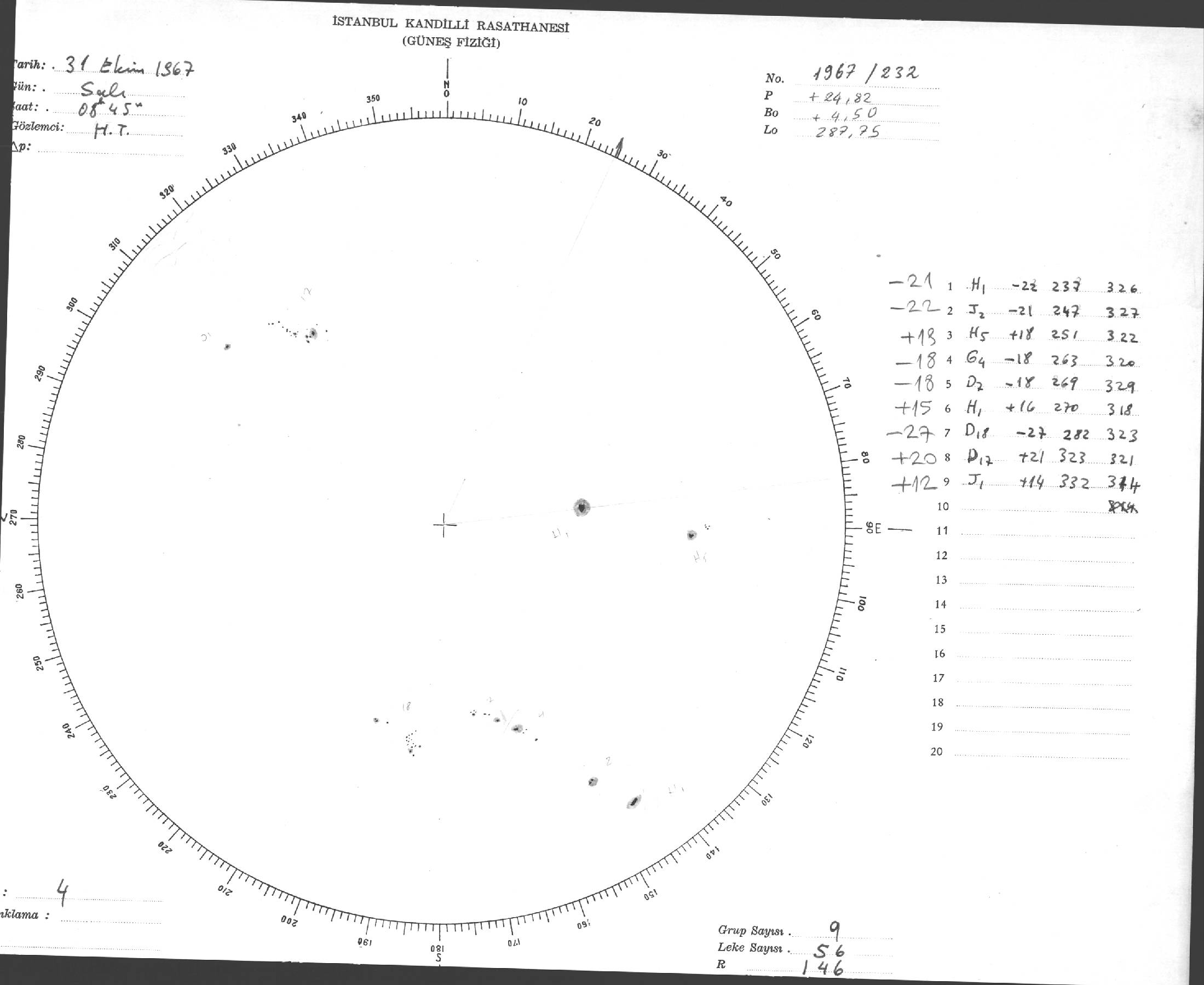 Güneş Lekesi Çizimi - 31.10.1967