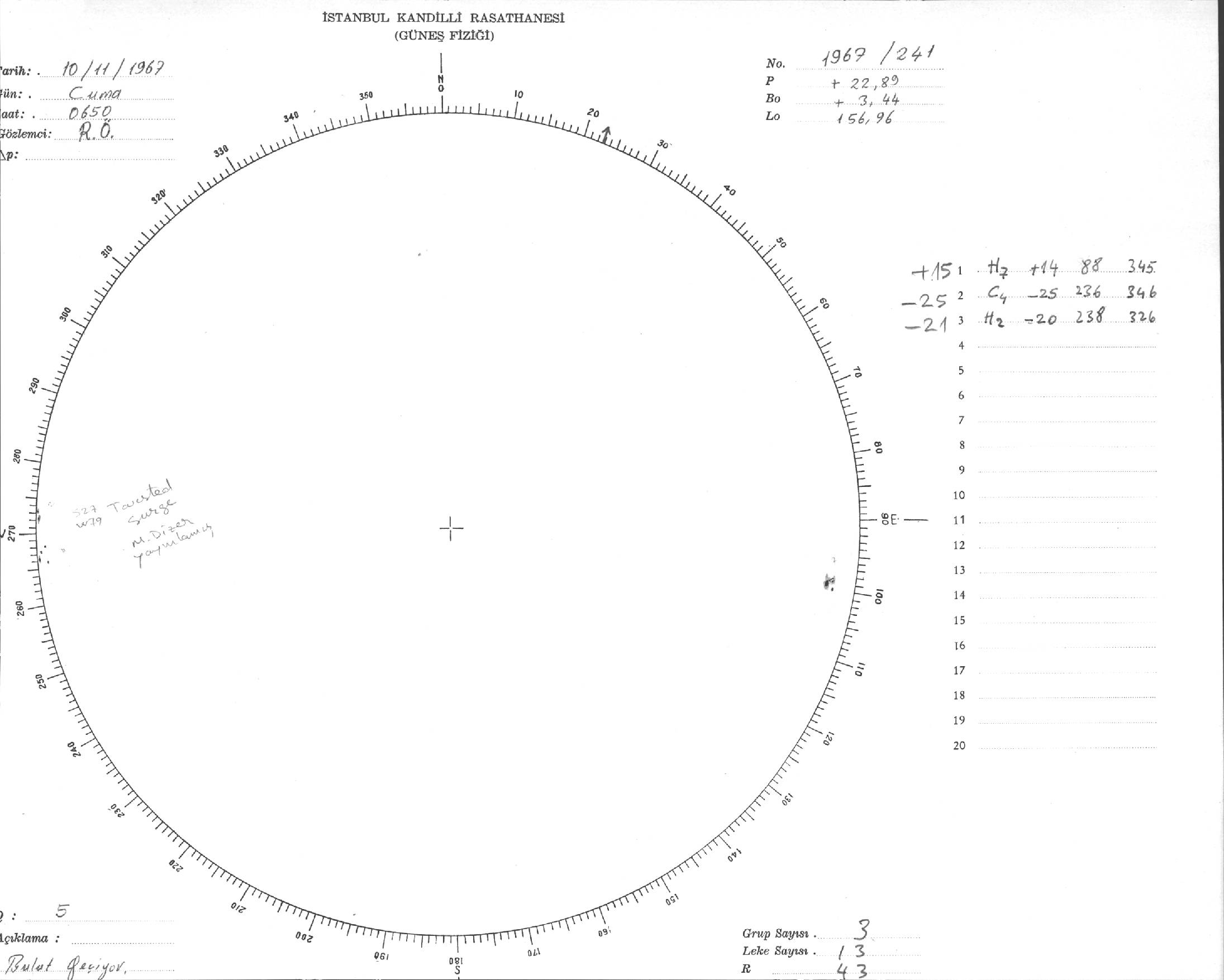 Güneş Lekesi Çizimi - 10.11.1967