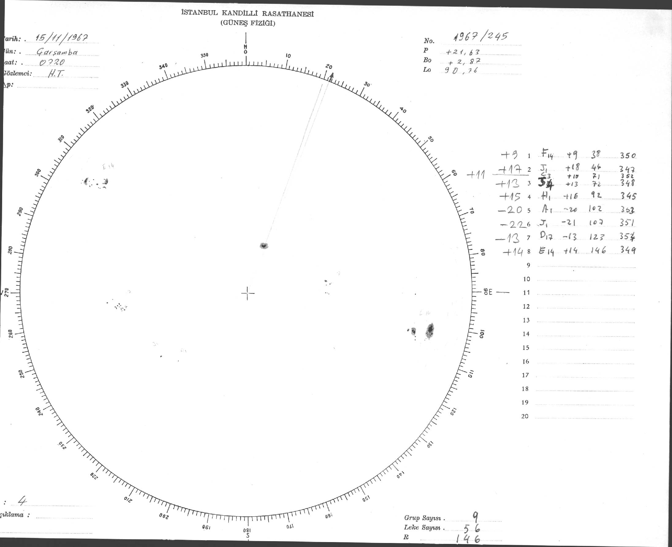 Güneş Lekesi Çizimi - 15.11.1967