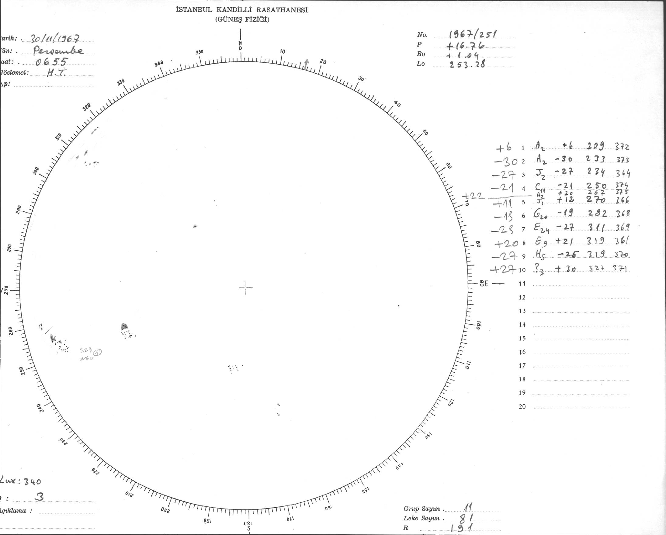 Güneş Lekesi Çizimi - 30.11.1967