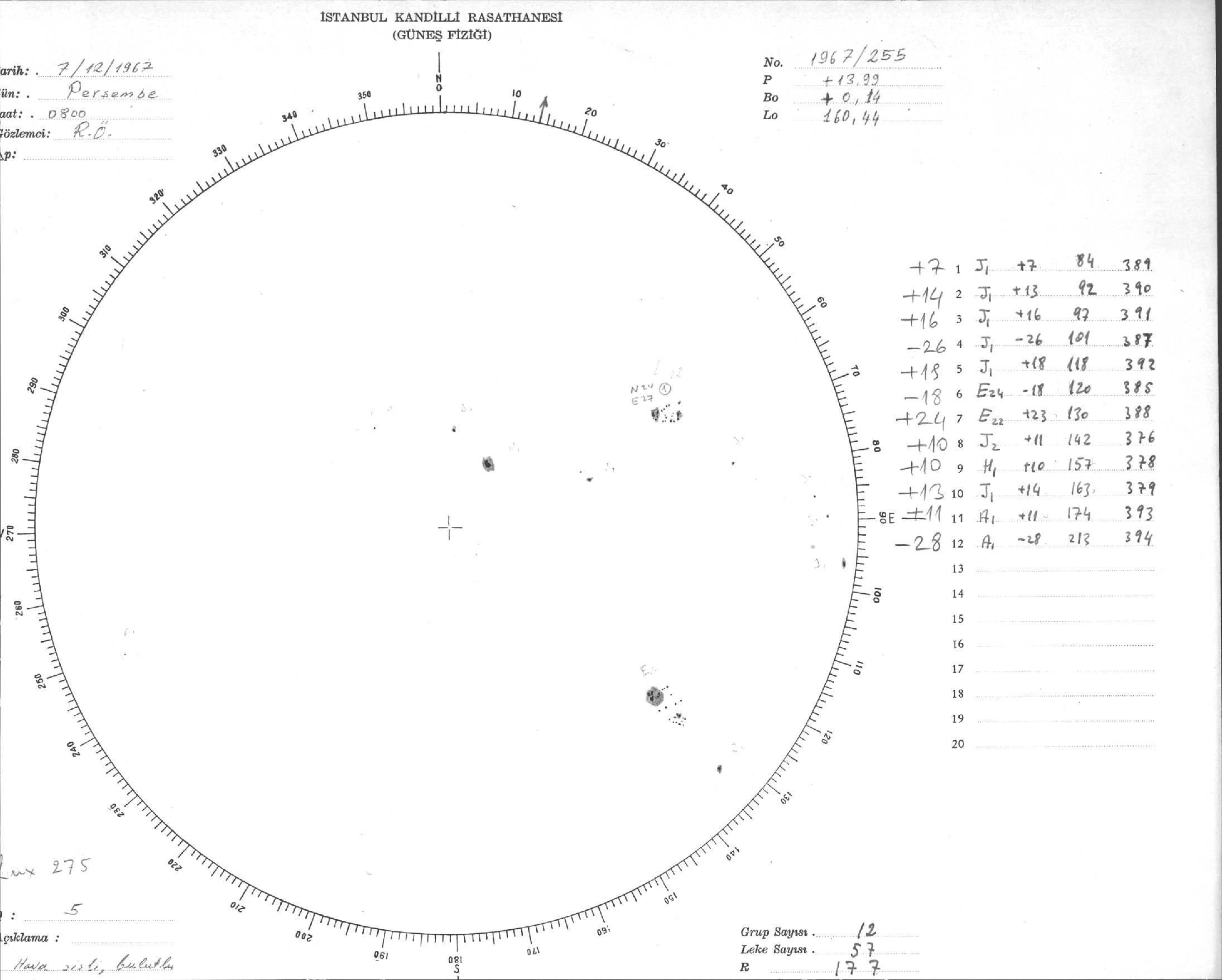 Güneş Lekesi Çizimi - 07.12.1967
