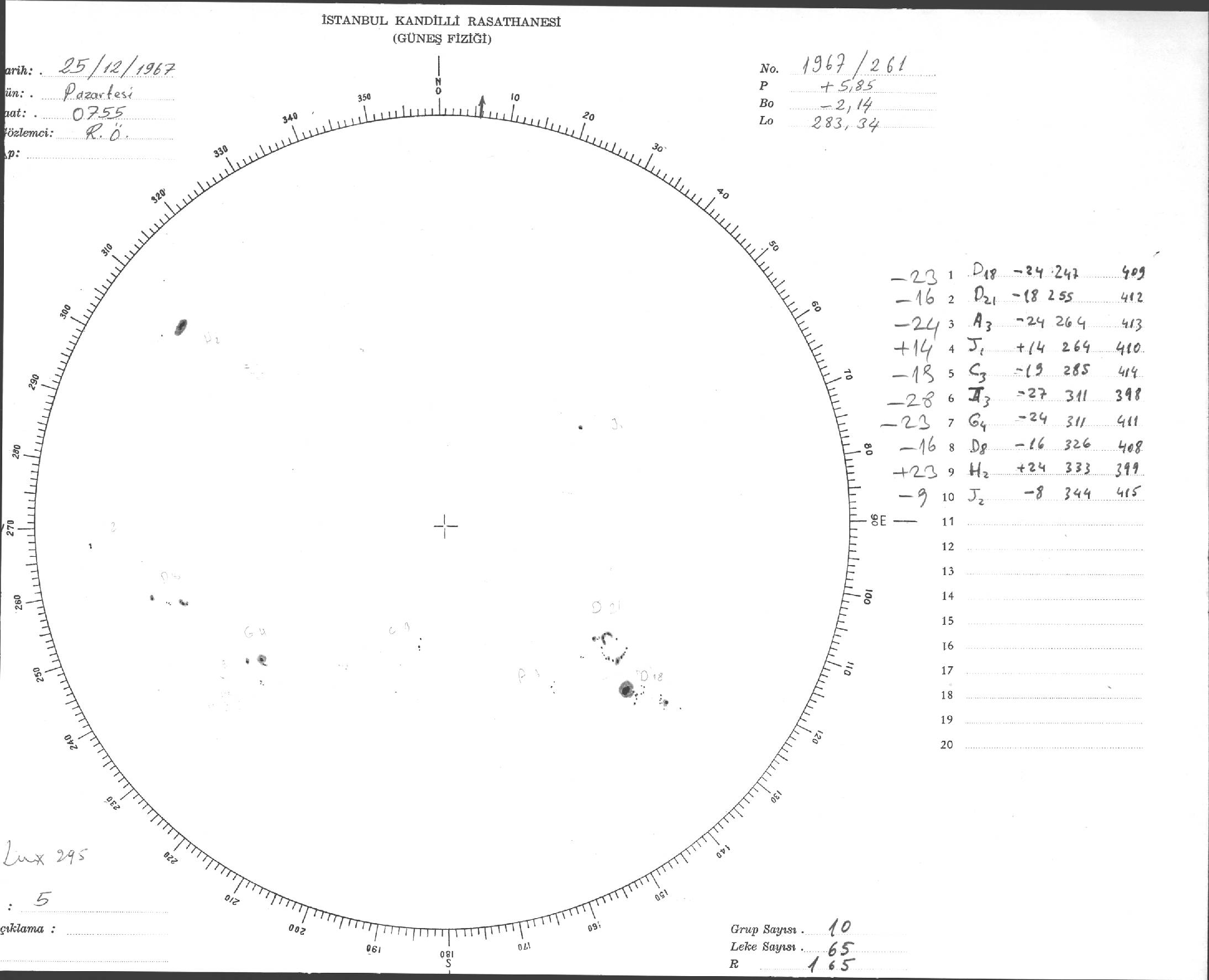 Güneş Lekesi Çizimi - 25.12.1967