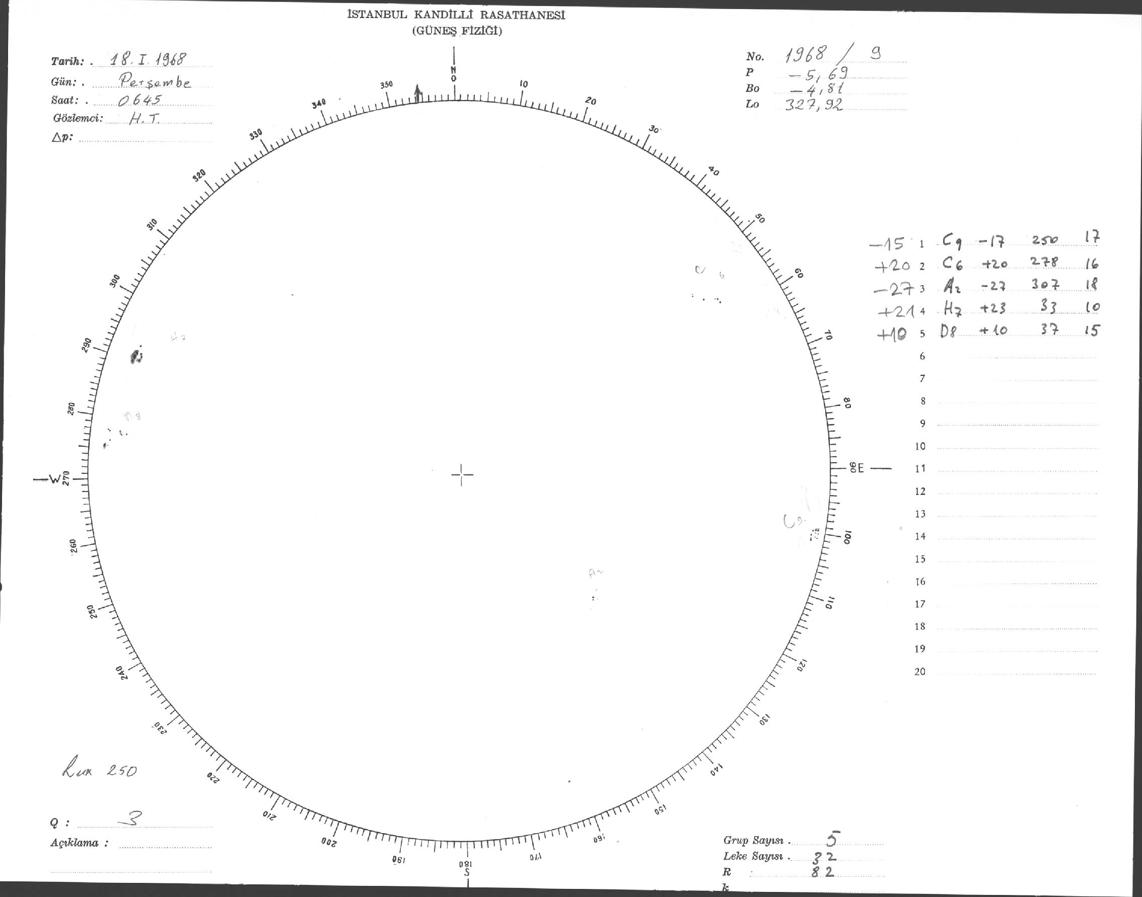 Güneş Lekesi Çizimi - 18.01.1968