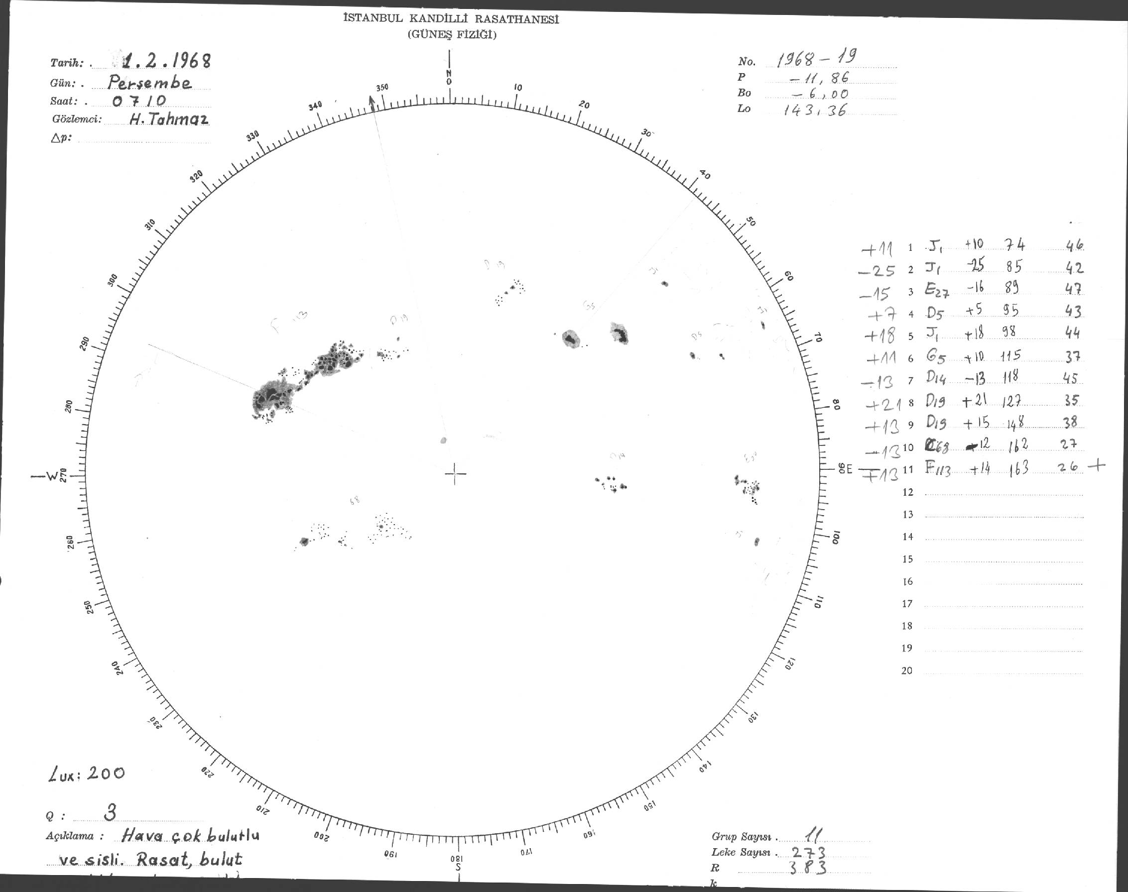 Güneş Lekesi Çizimi - 01.02.1968