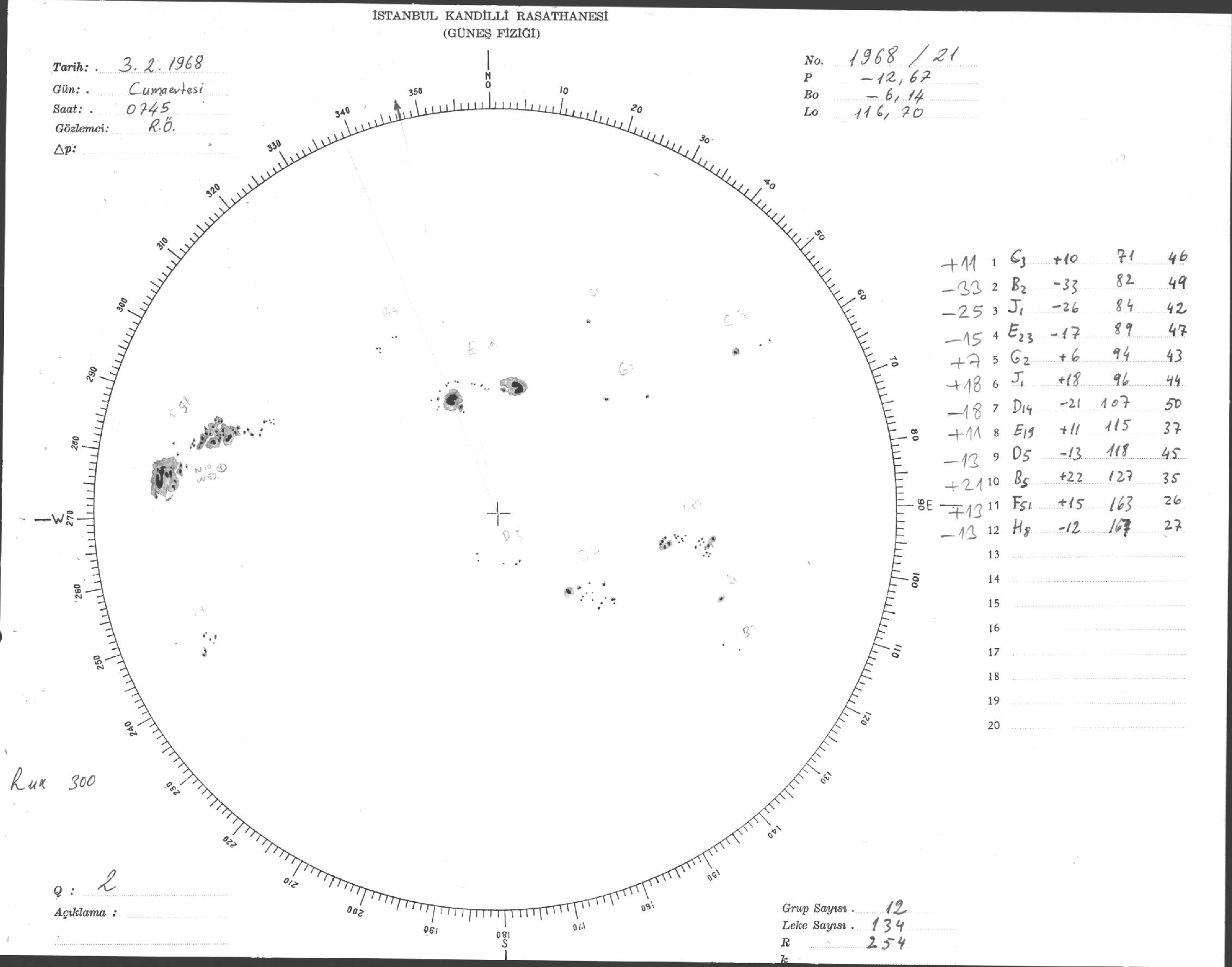 Güneş Lekesi Çizimi - 03.02.1968