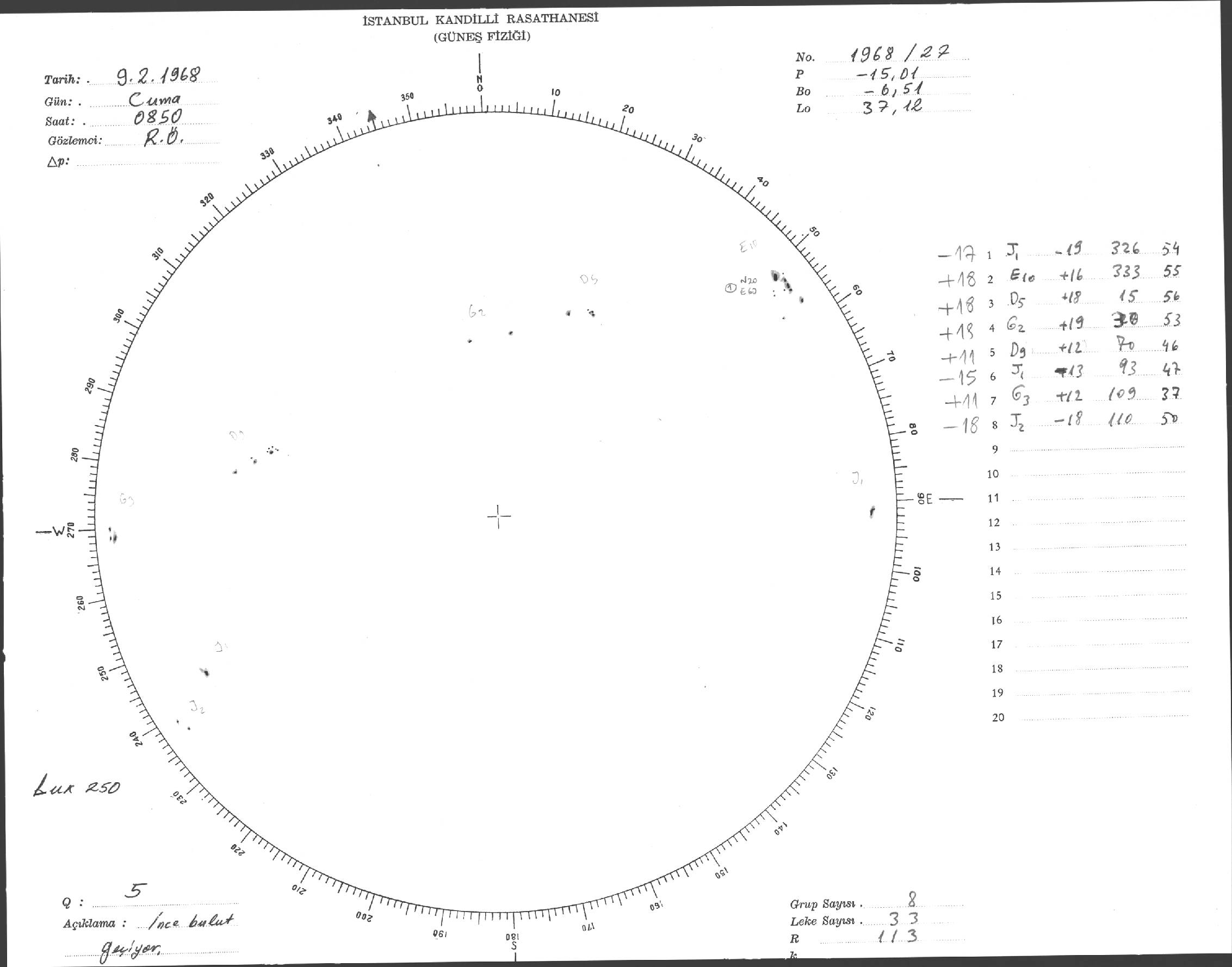 Güneş Lekesi Çizimi - 09.02.1968
