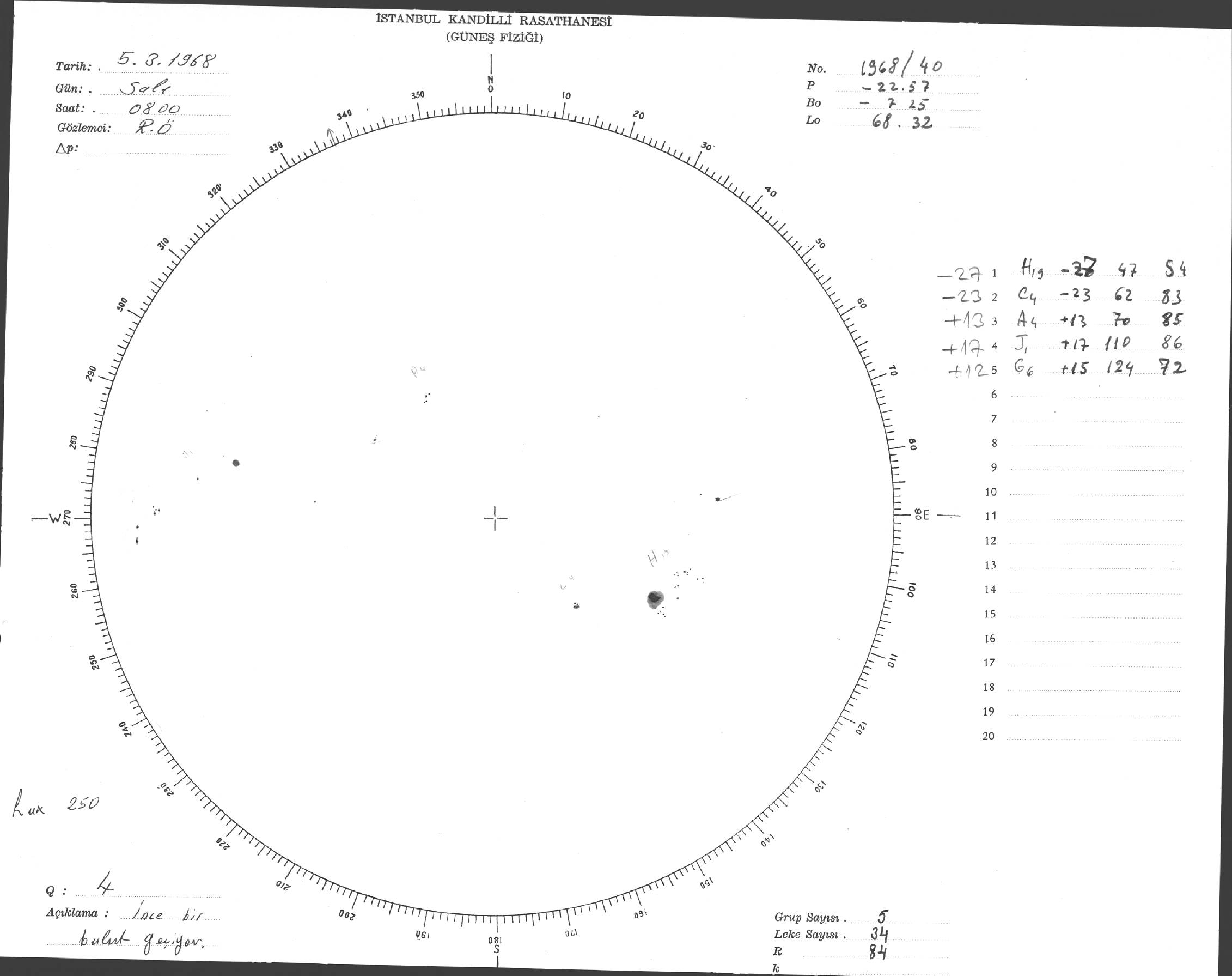 Güneş Lekesi Çizimi - 05.03.1968
