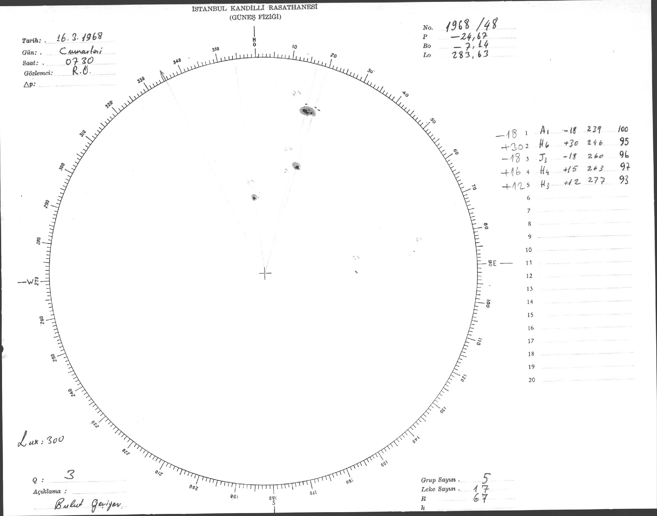 Güneş Lekesi Çizimi - 16.03.1968