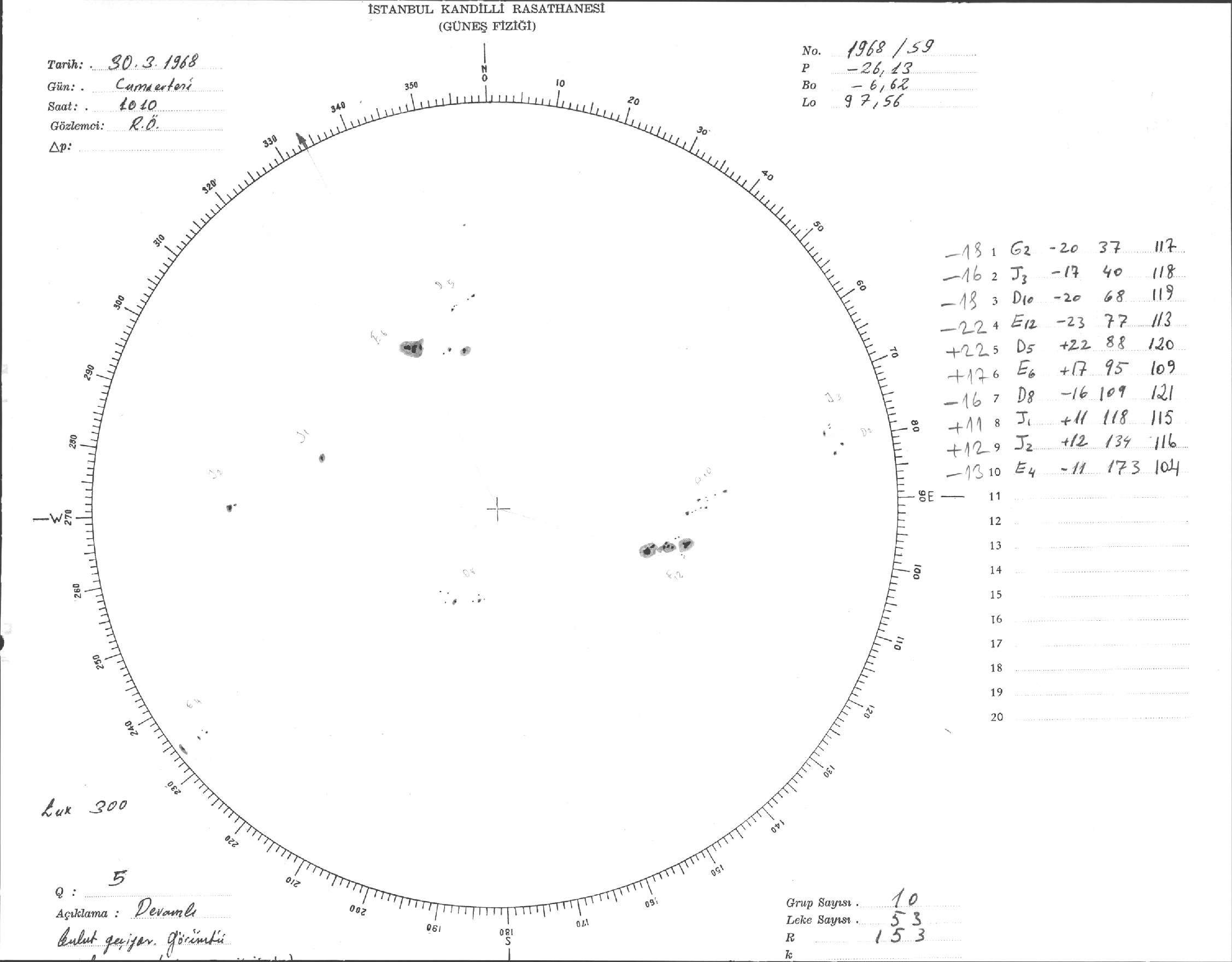 Güneş Lekesi Çizimi - 30.03.1968