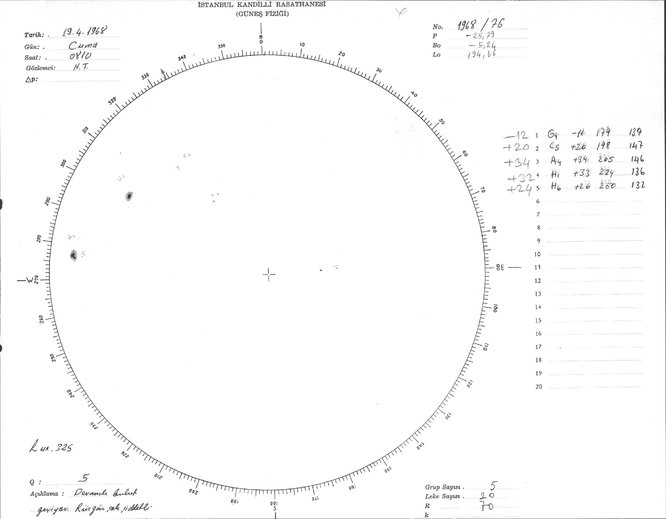 Güneş Lekesi Çizimi - 19.04.1968