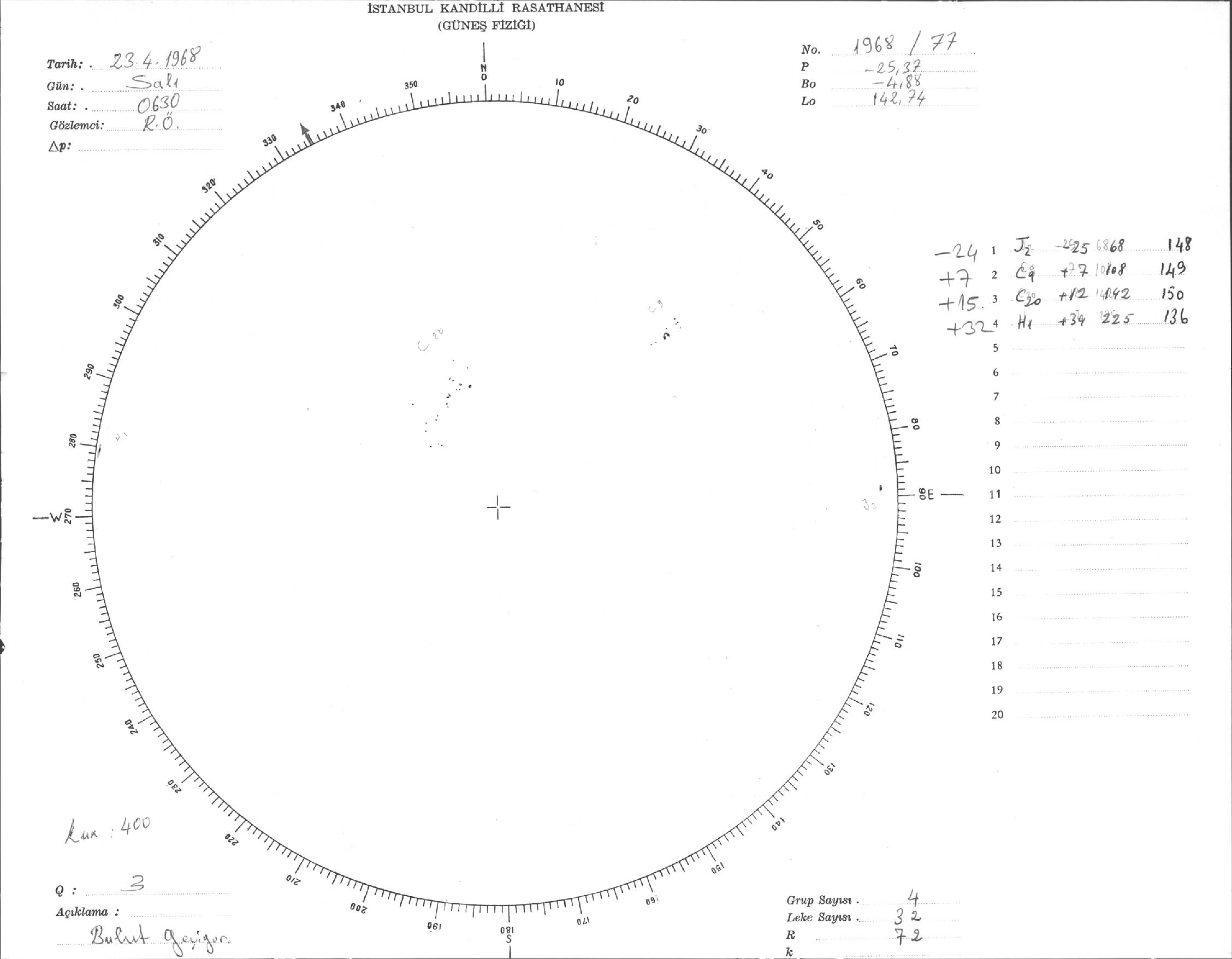 Güneş Lekesi Çizimi - 23.04.1968