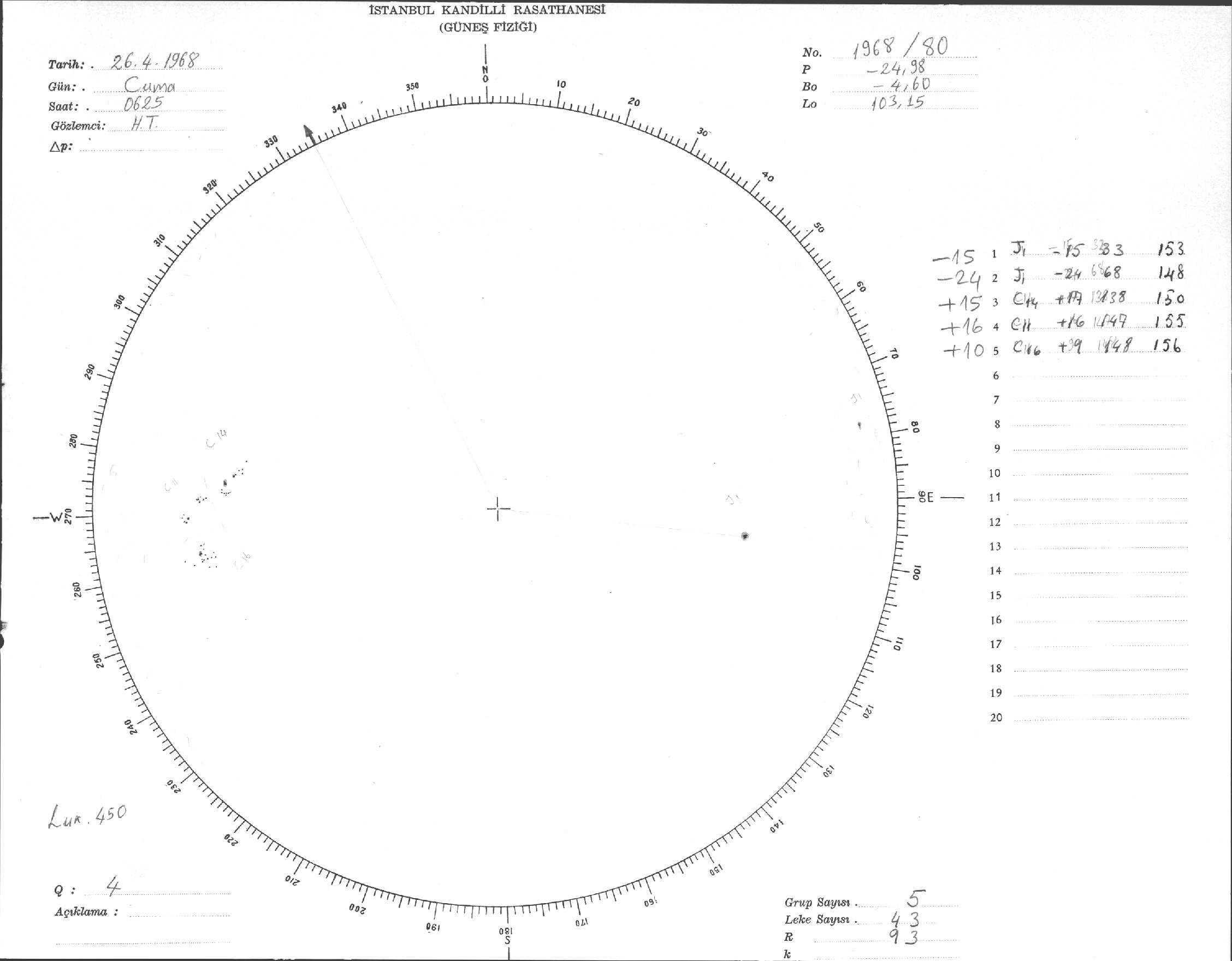 Güneş Lekesi Çizimi - 26.04.1968