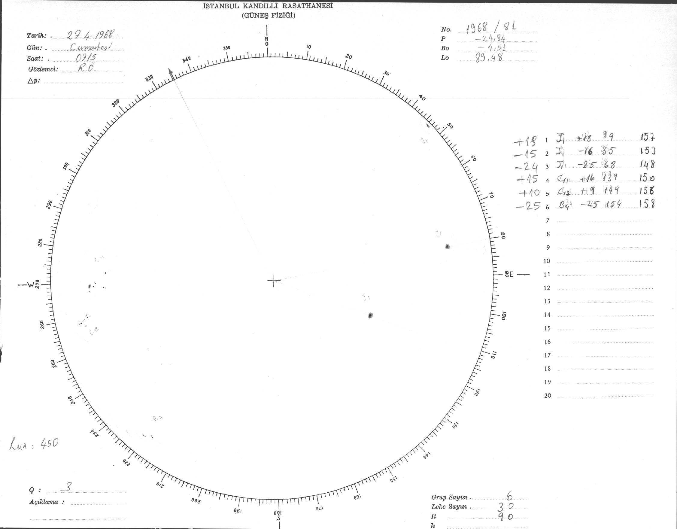 Güneş Lekesi Çizimi - 27.04.1968