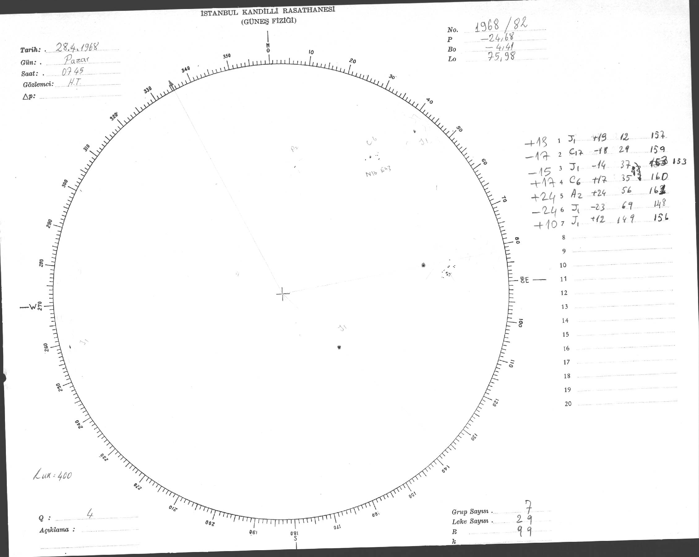 Güneş Lekesi Çizimi - 28.04.1968