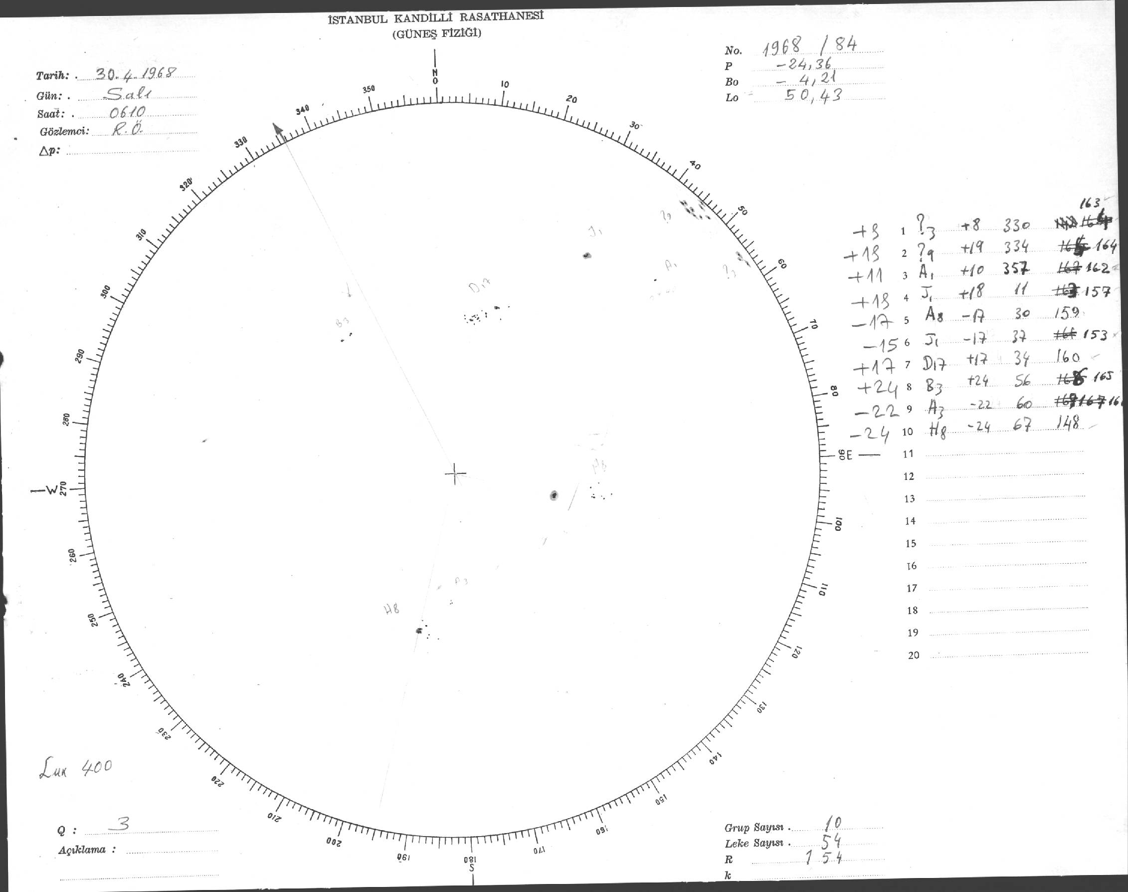 Güneş Lekesi Çizimi - 30.04.1968