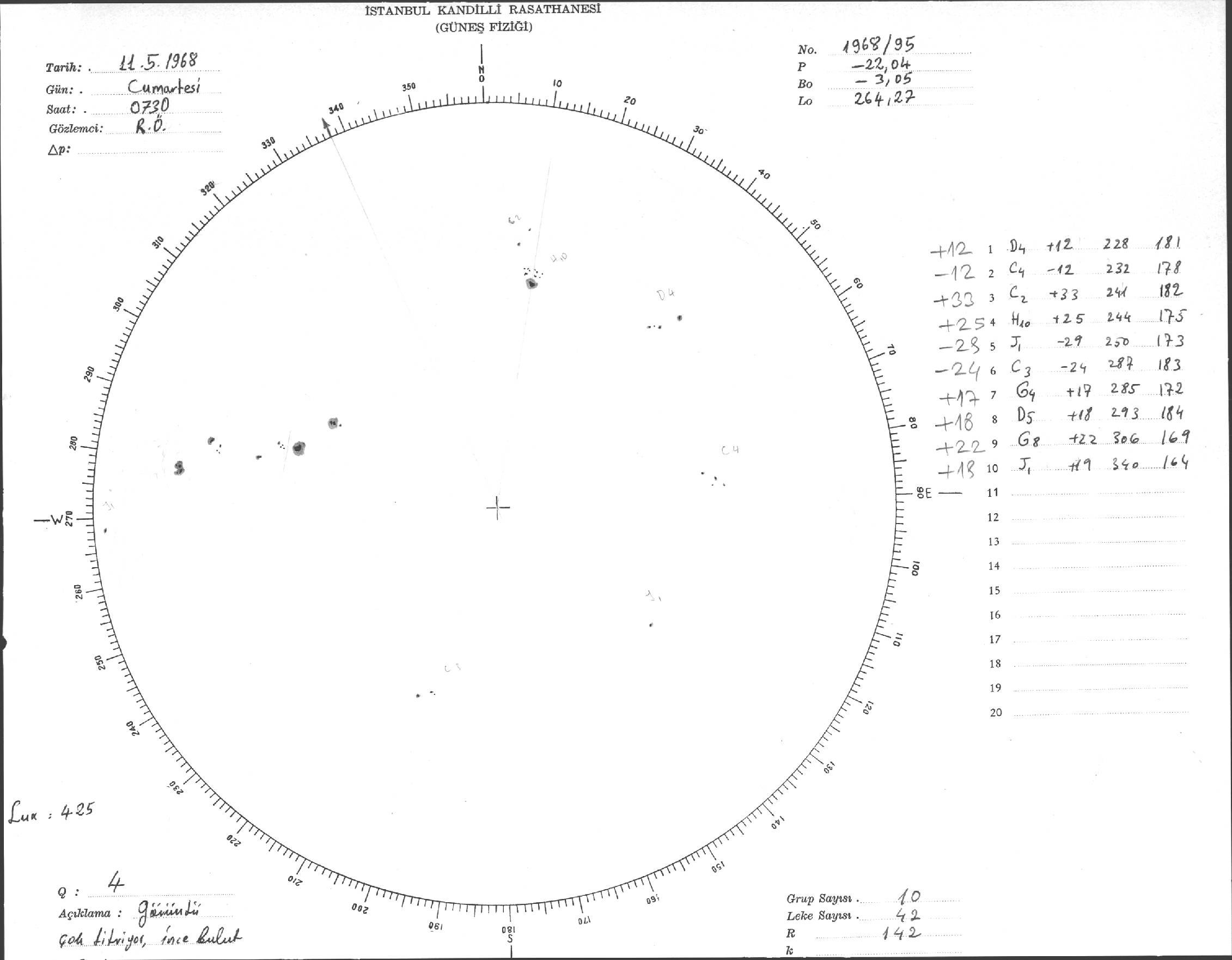 Güneş Lekesi Çizimi - 11.05.1968