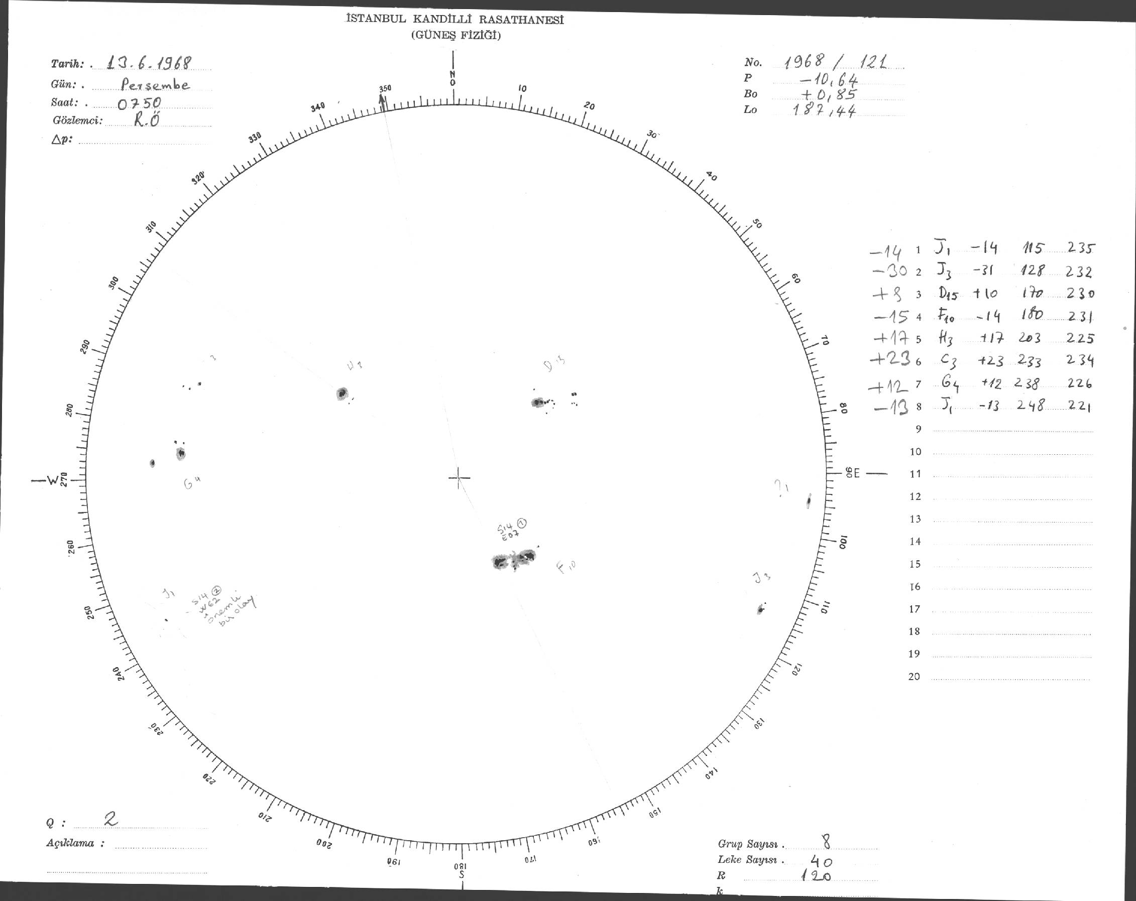 Güneş Lekesi Çizimi - 13.06.1968