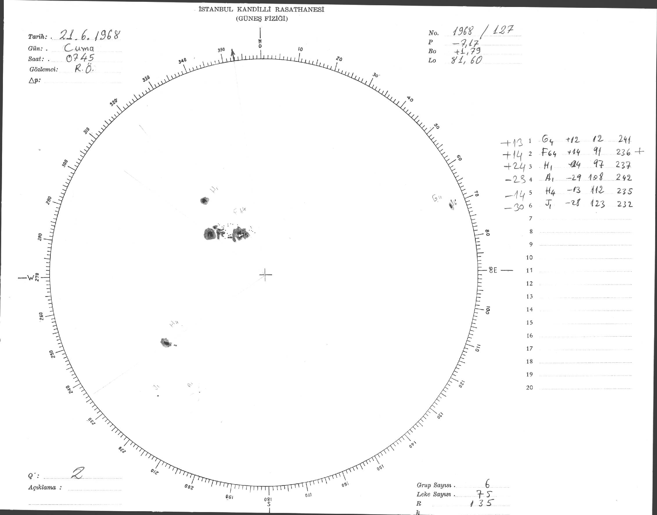 Güneş Lekesi Çizimi - 21.06.1968