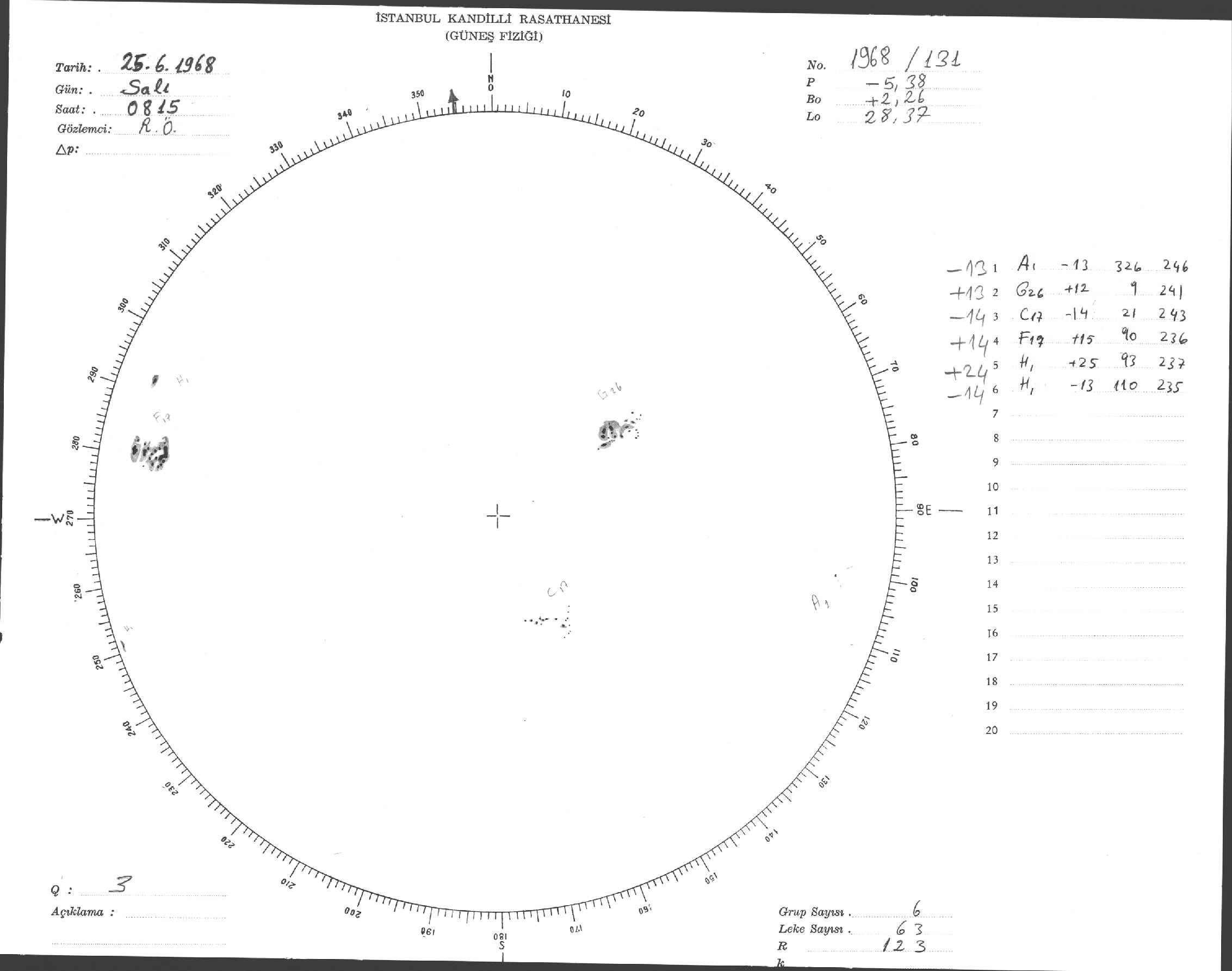 Güneş Lekesi Çizimi - 25.06.1968