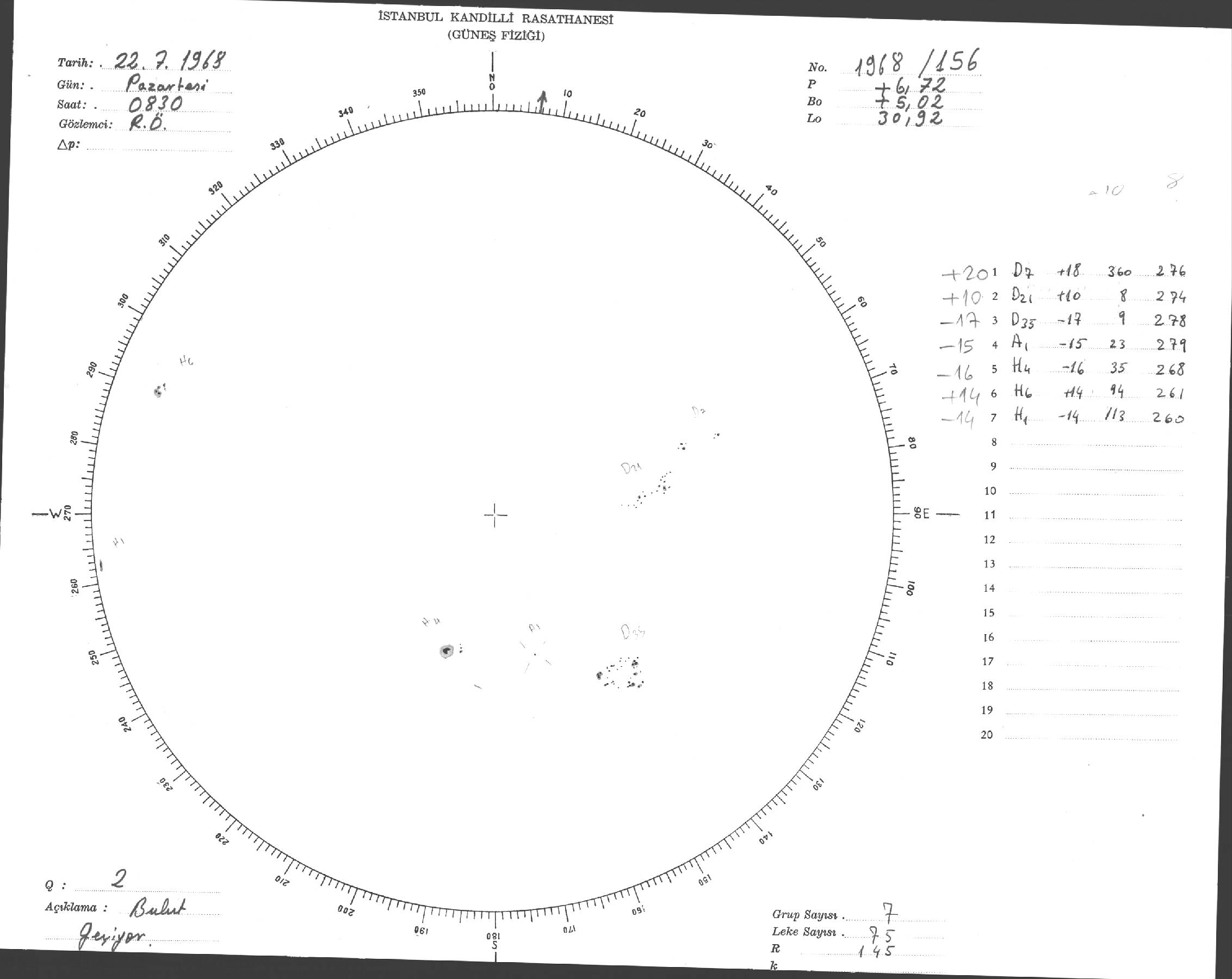 Güneş Lekesi Çizimi - 22.07.1968