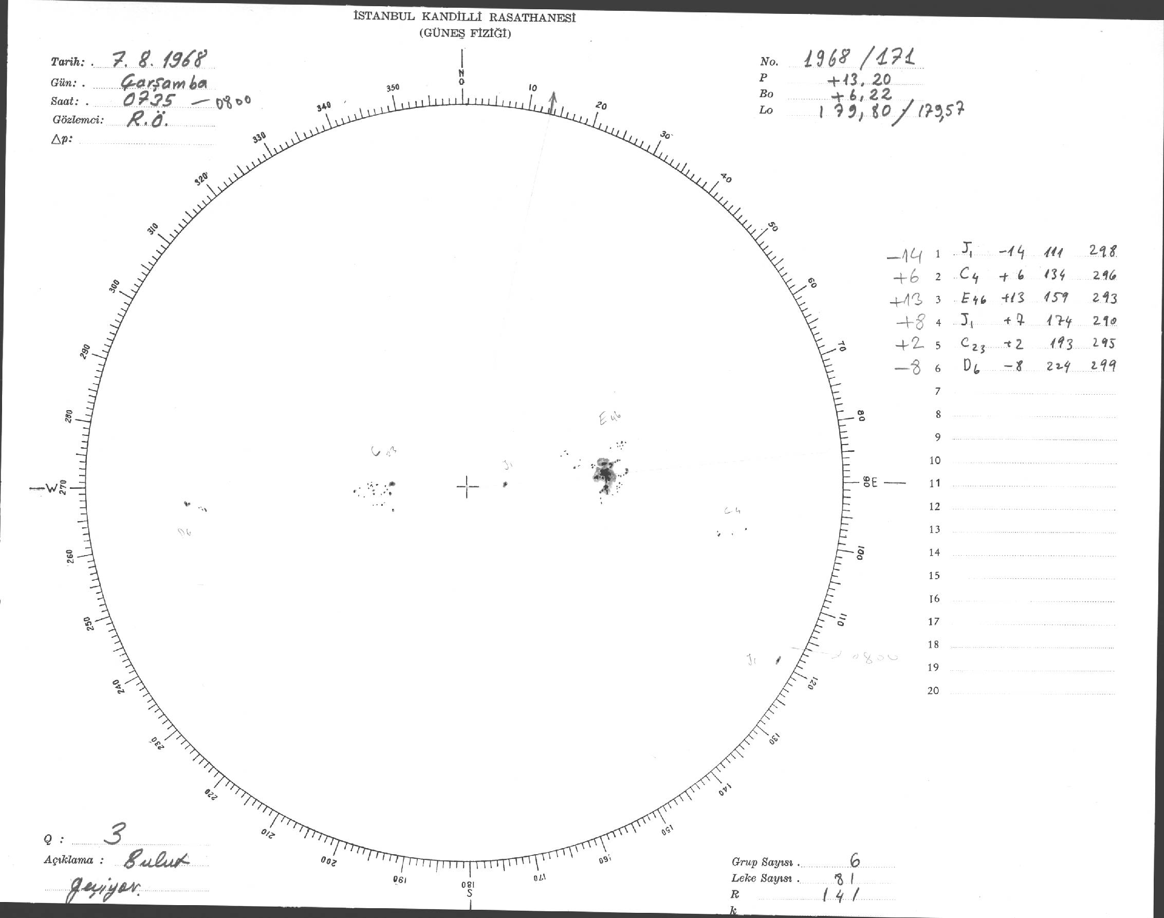 Güneş Lekesi Çizimi - 07.08.1968