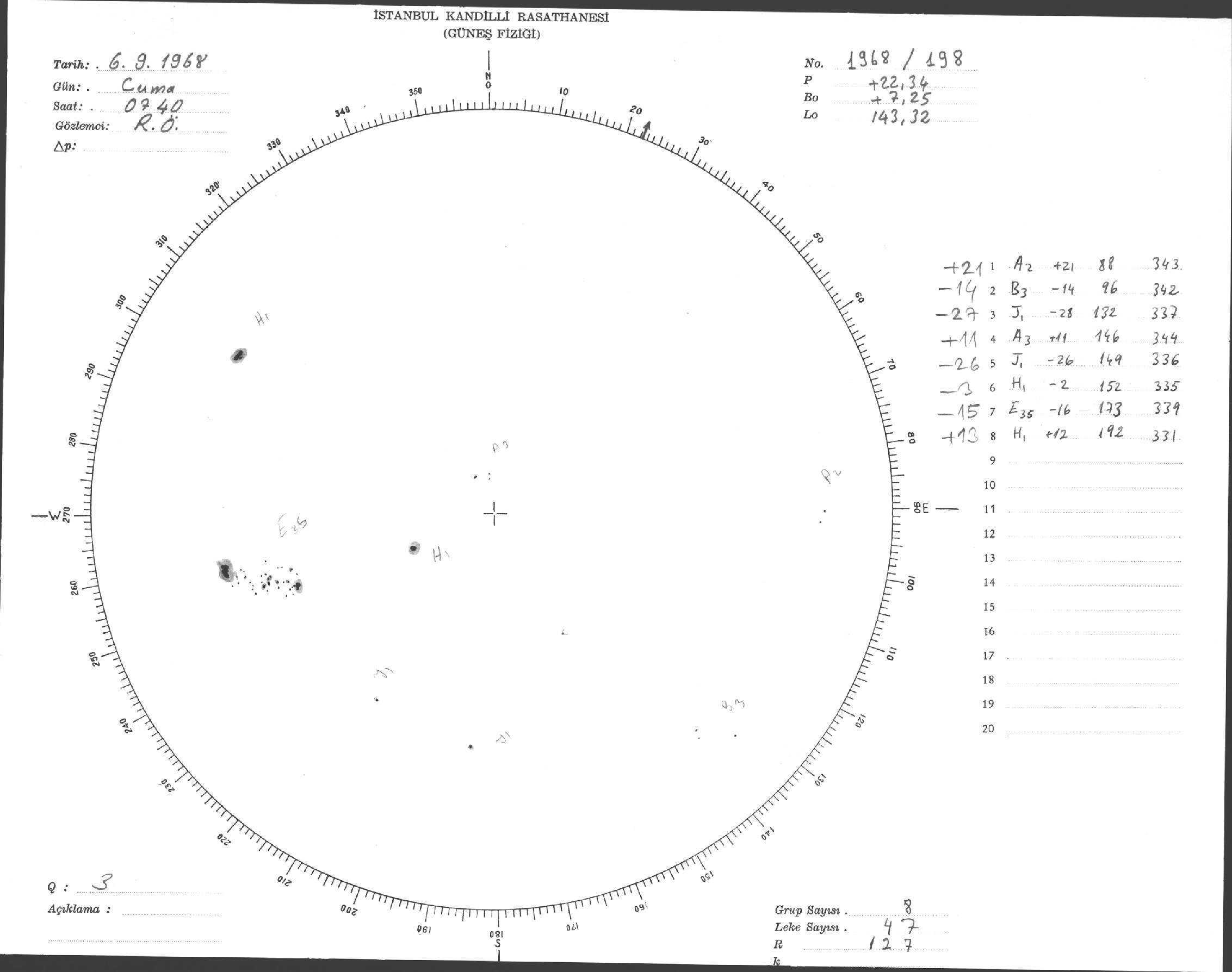 Güneş Lekesi Çizimi - 06.09.1968
