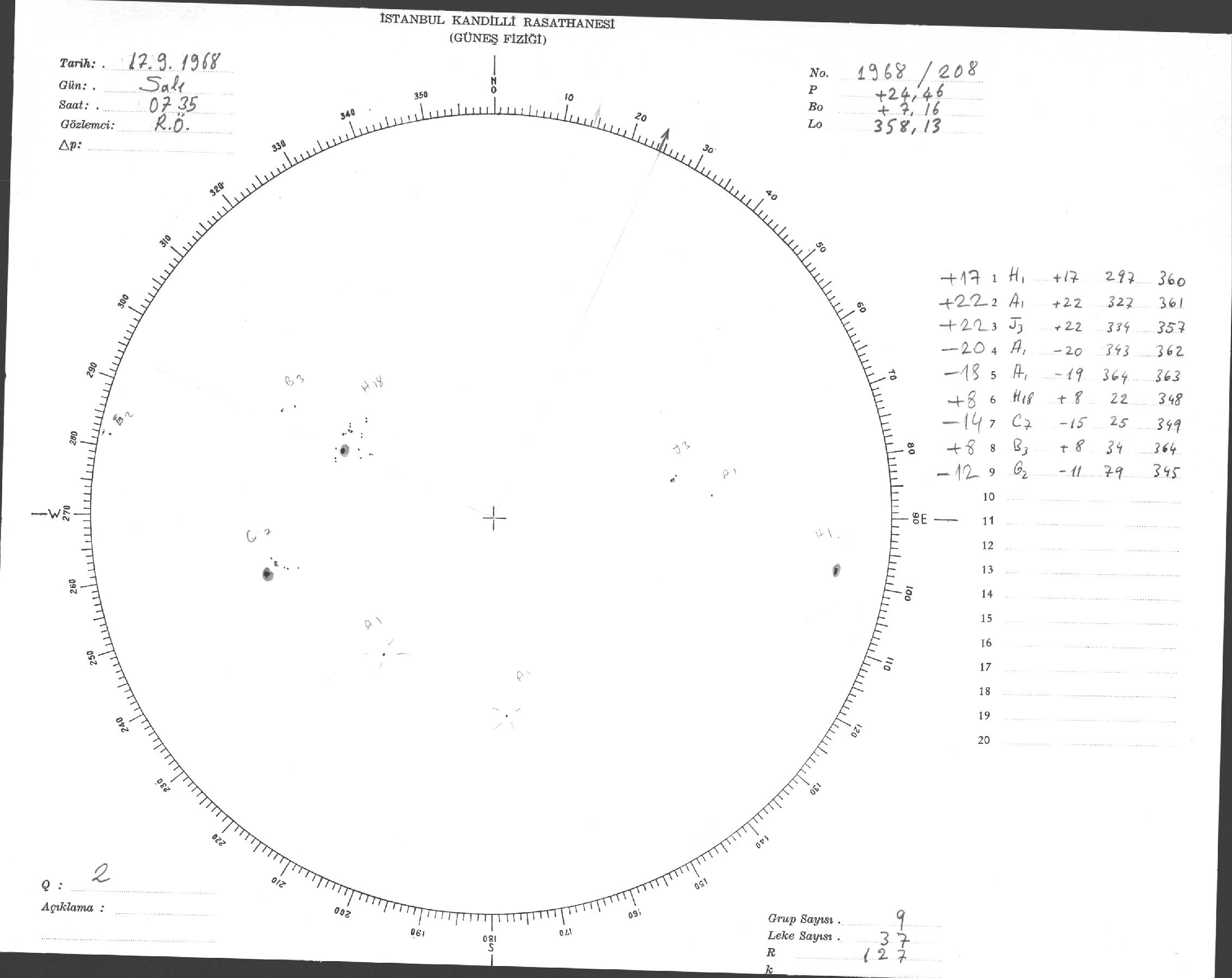 Güneş Lekesi Çizimi - 17.09.1968