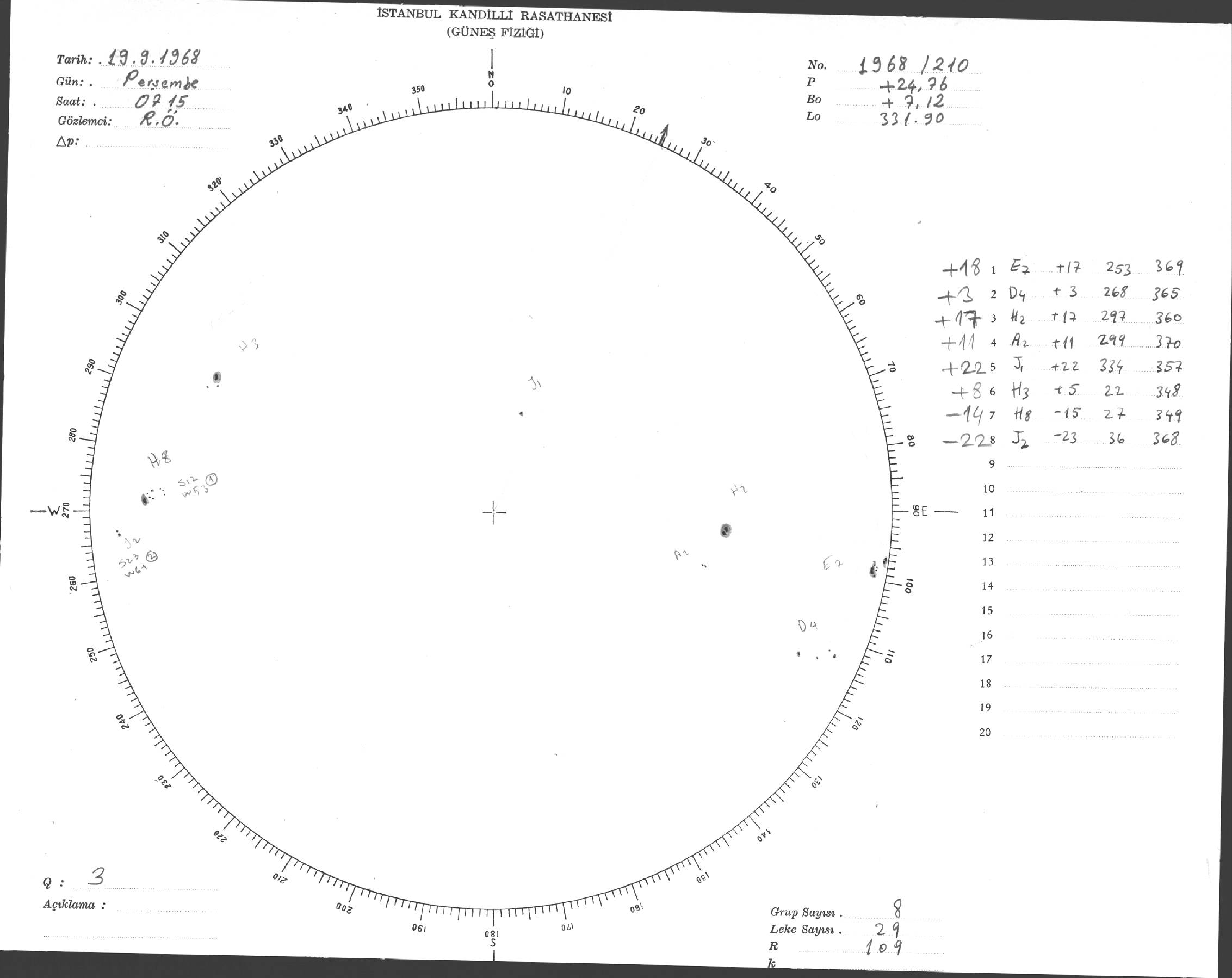 Güneş Lekesi Çizimi - 19.09.1968