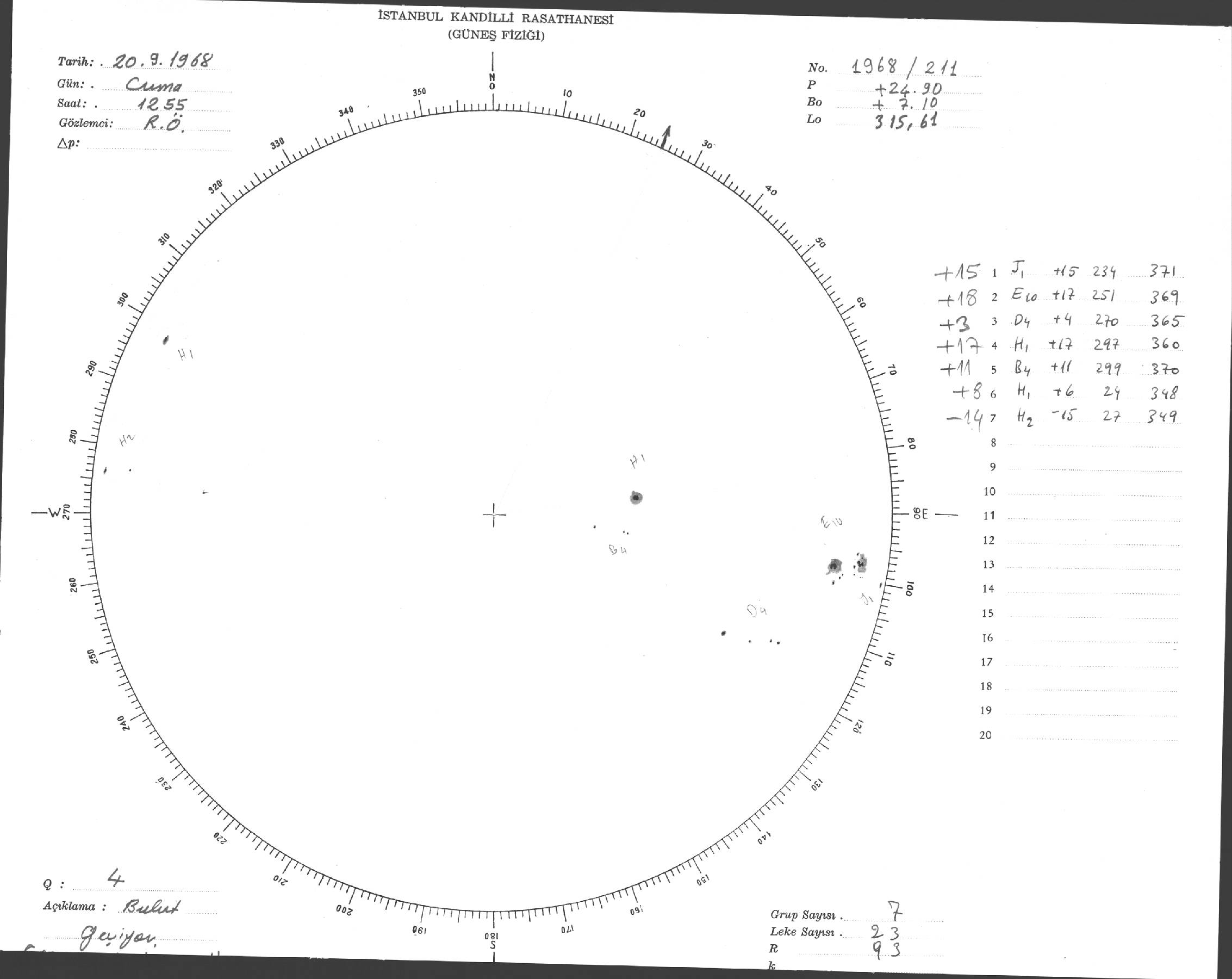 Güneş Lekesi Çizimi - 20.09.1968