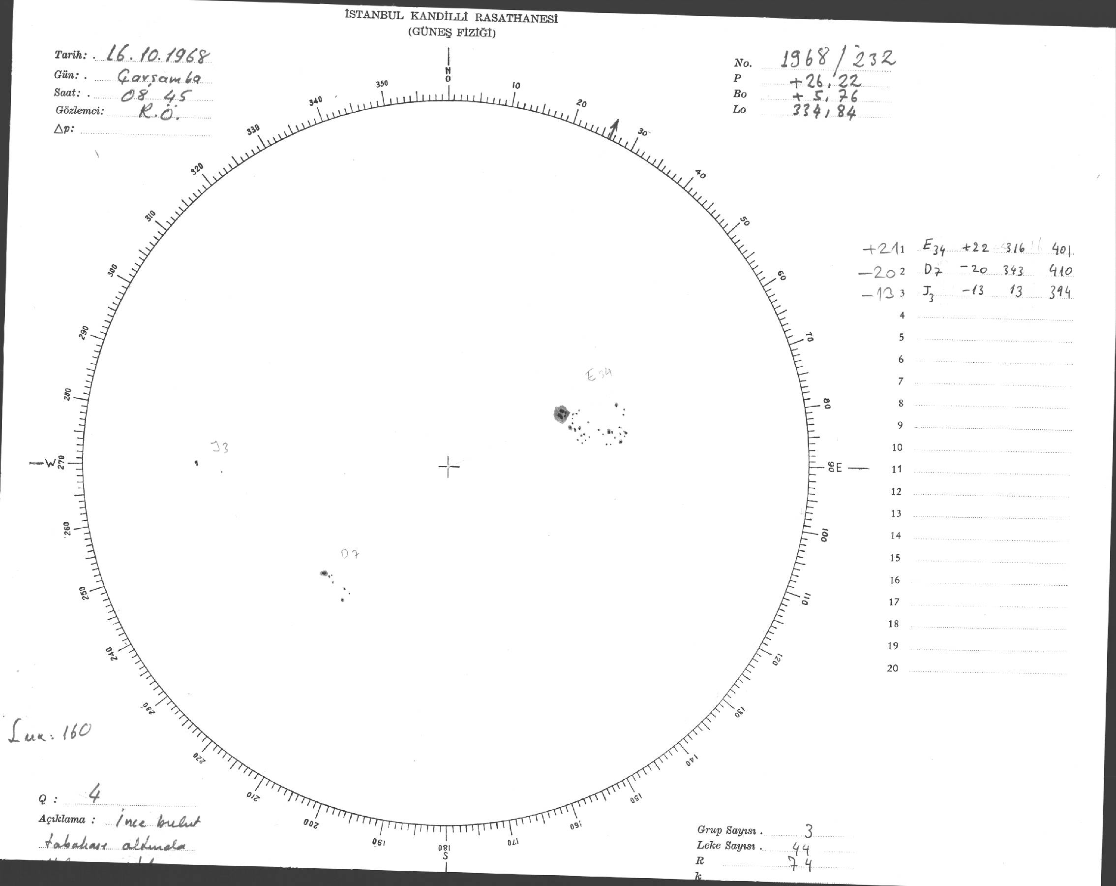 Güneş Lekesi Çizimi - 16.10.1968
