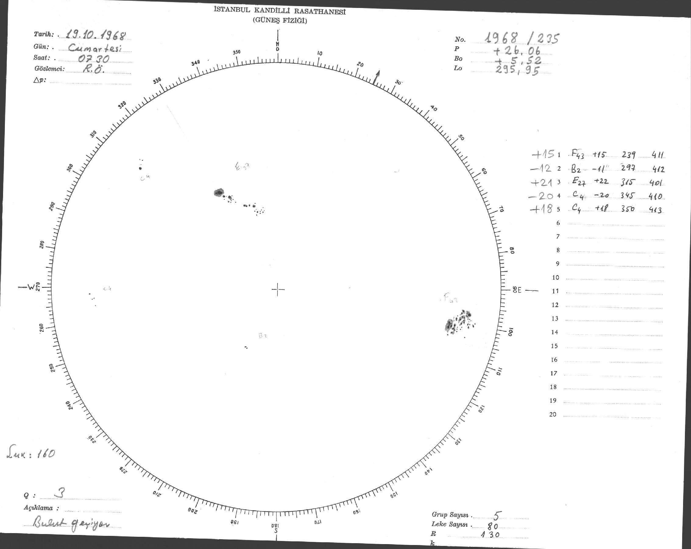 Güneş Lekesi Çizimi - 19.10.1968