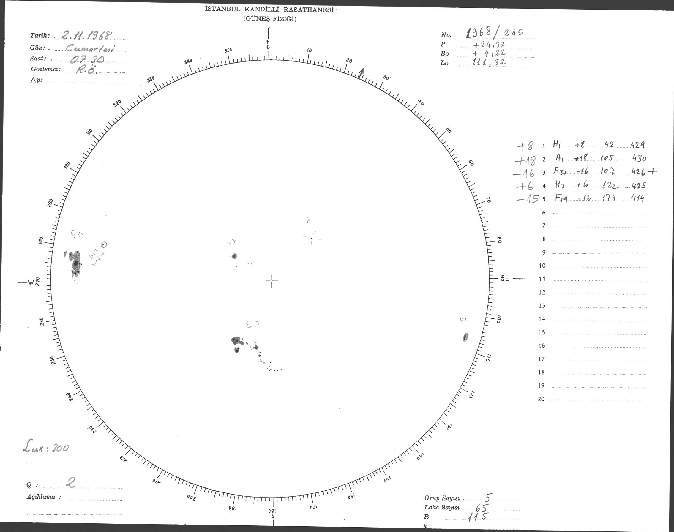 Güneş Lekesi Çizimi - 02.11.1968