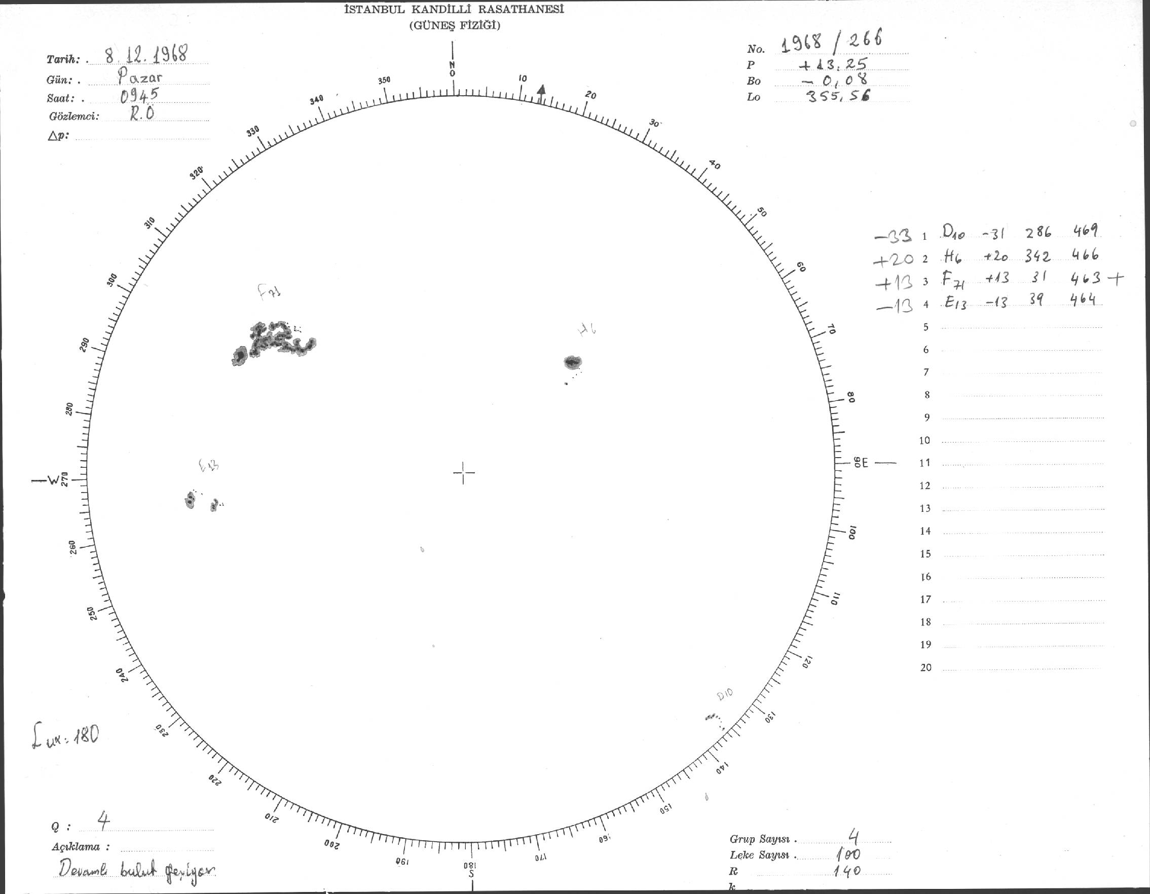 Güneş Lekesi Çizimi - 08.12.1968
