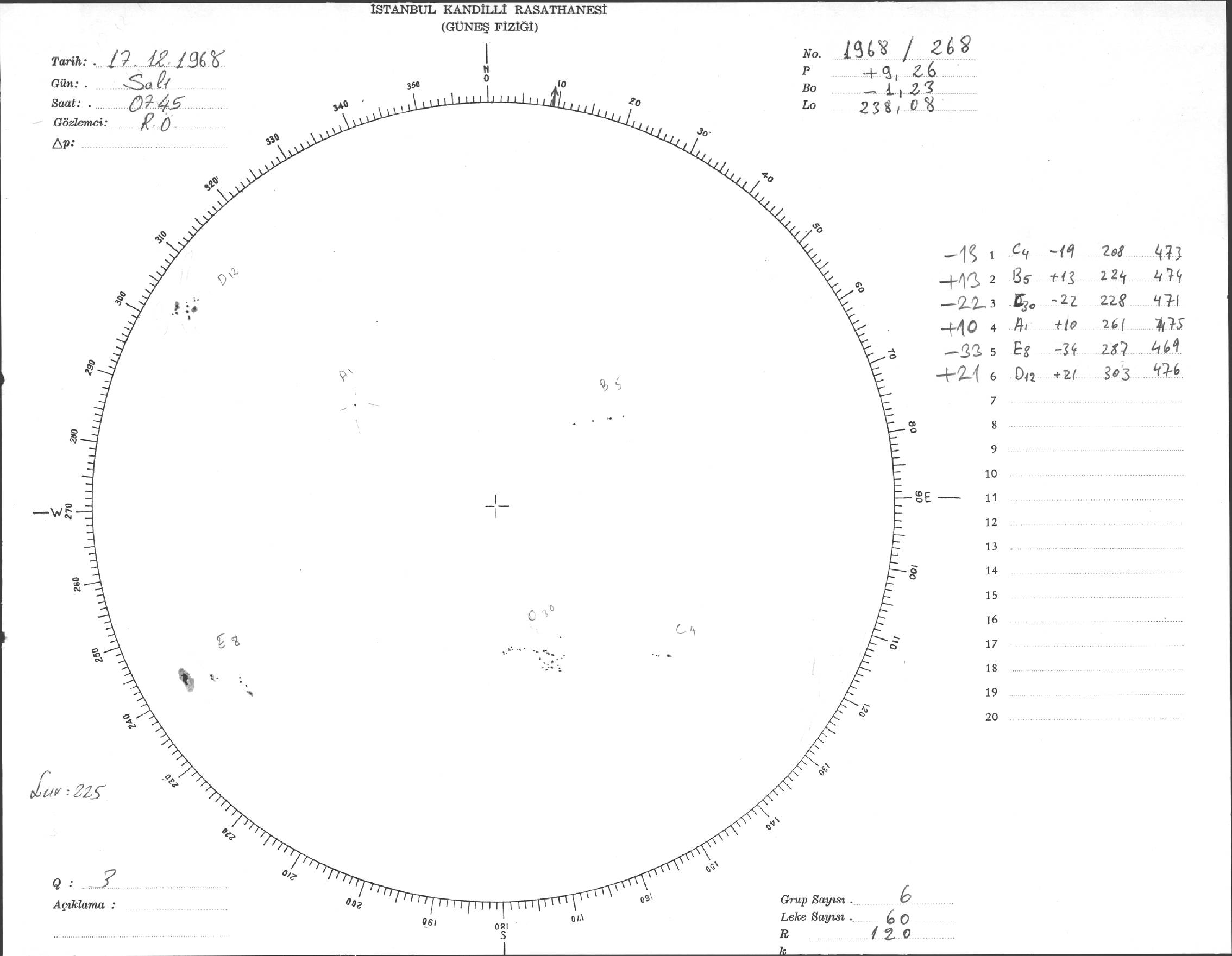 Güneş Lekesi Çizimi - 17.12.1968