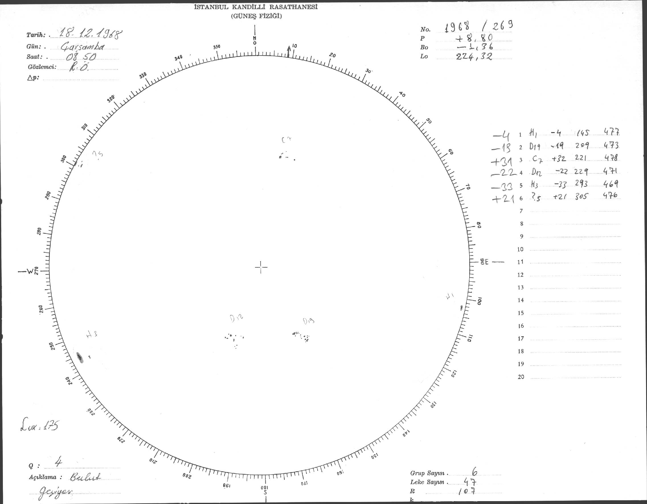 Güneş Lekesi Çizimi - 18.12.1968