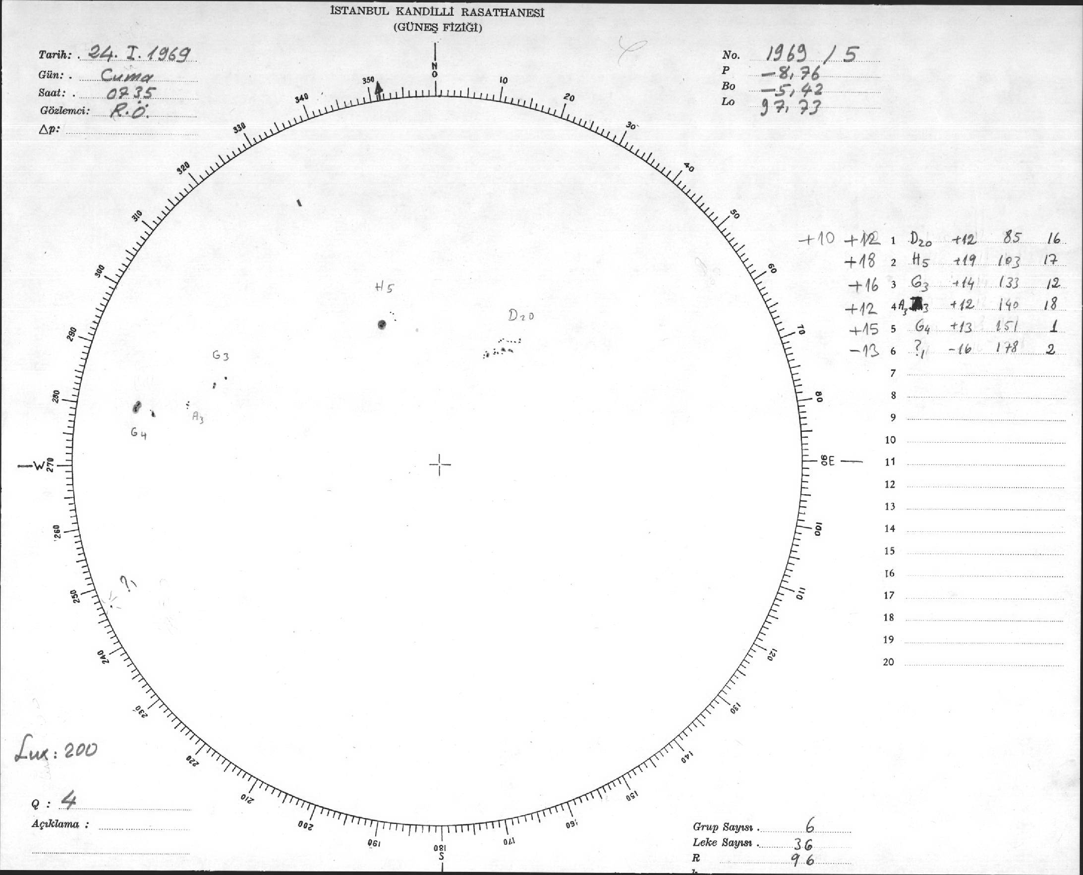 Güneş Lekesi Çizimi - 24.01.1969