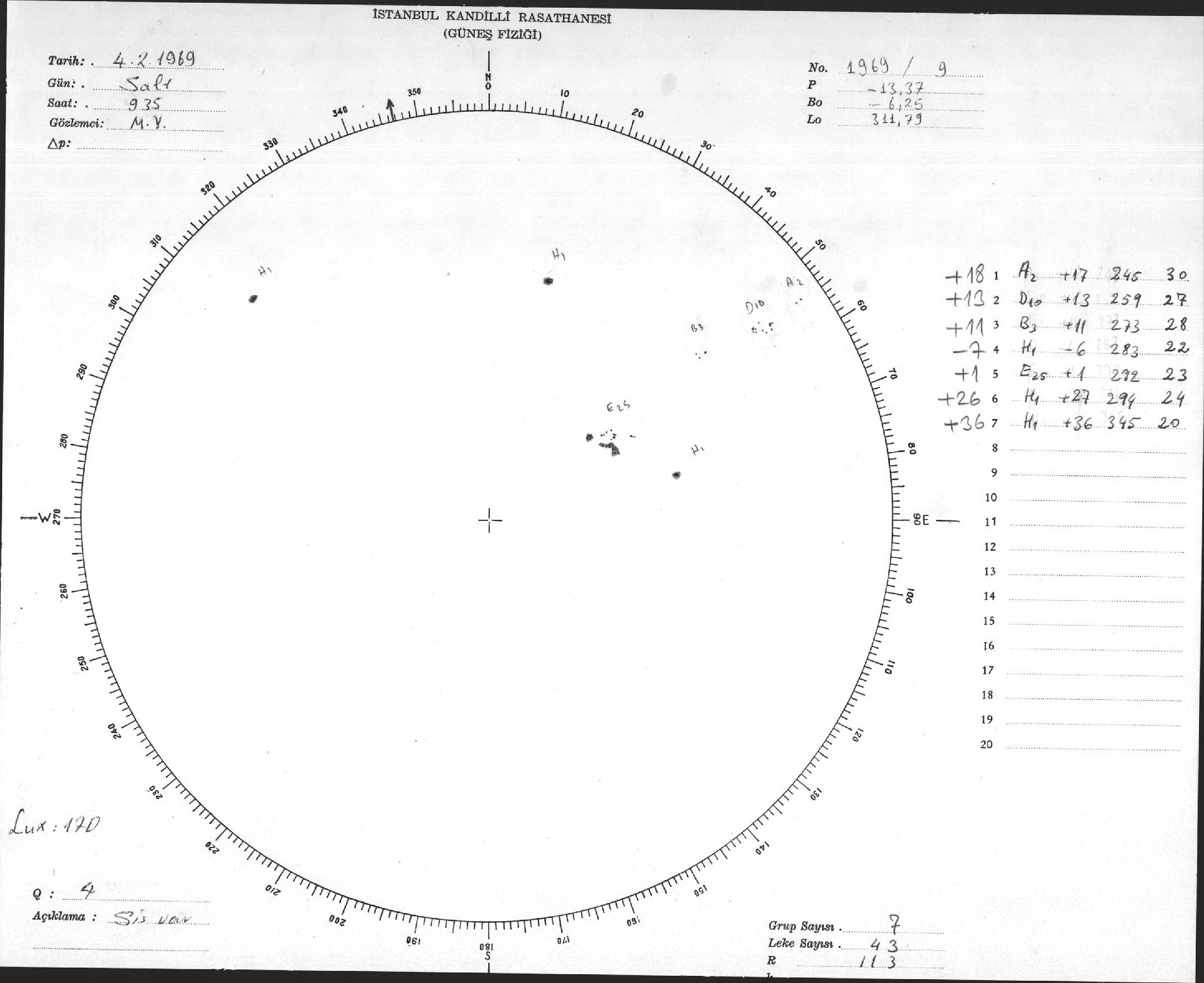 Güneş Lekesi Çizimi - 04.02.1969