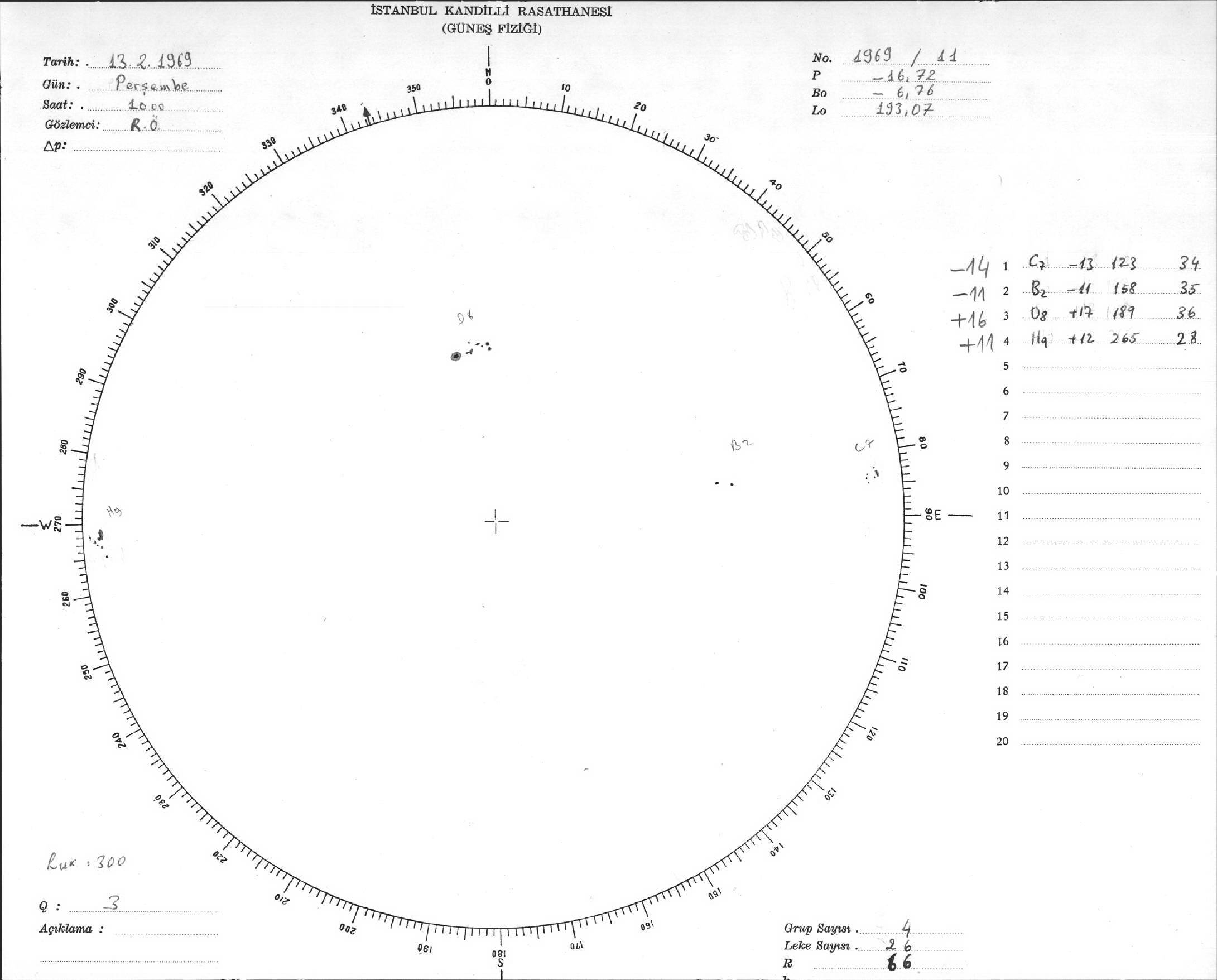 Güneş Lekesi Çizimi - 13.02.1969