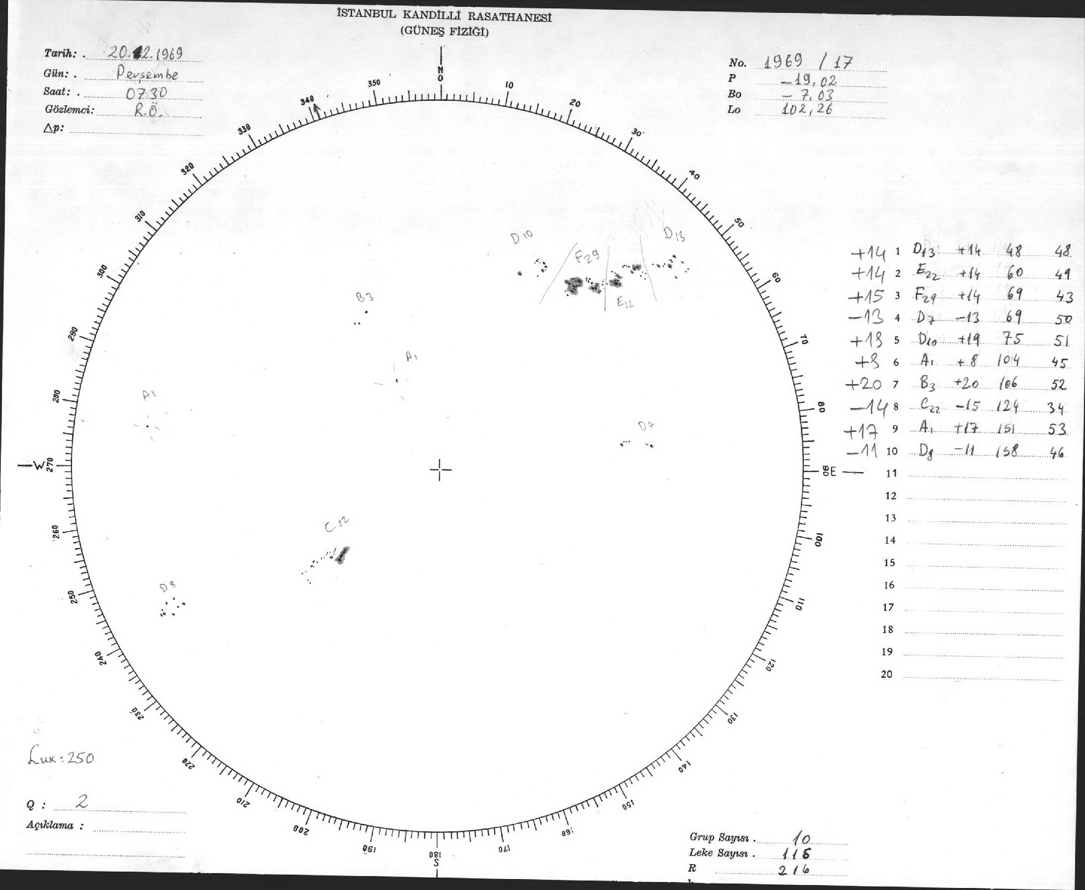 Güneş Lekesi Çizimi - 20.02.1969