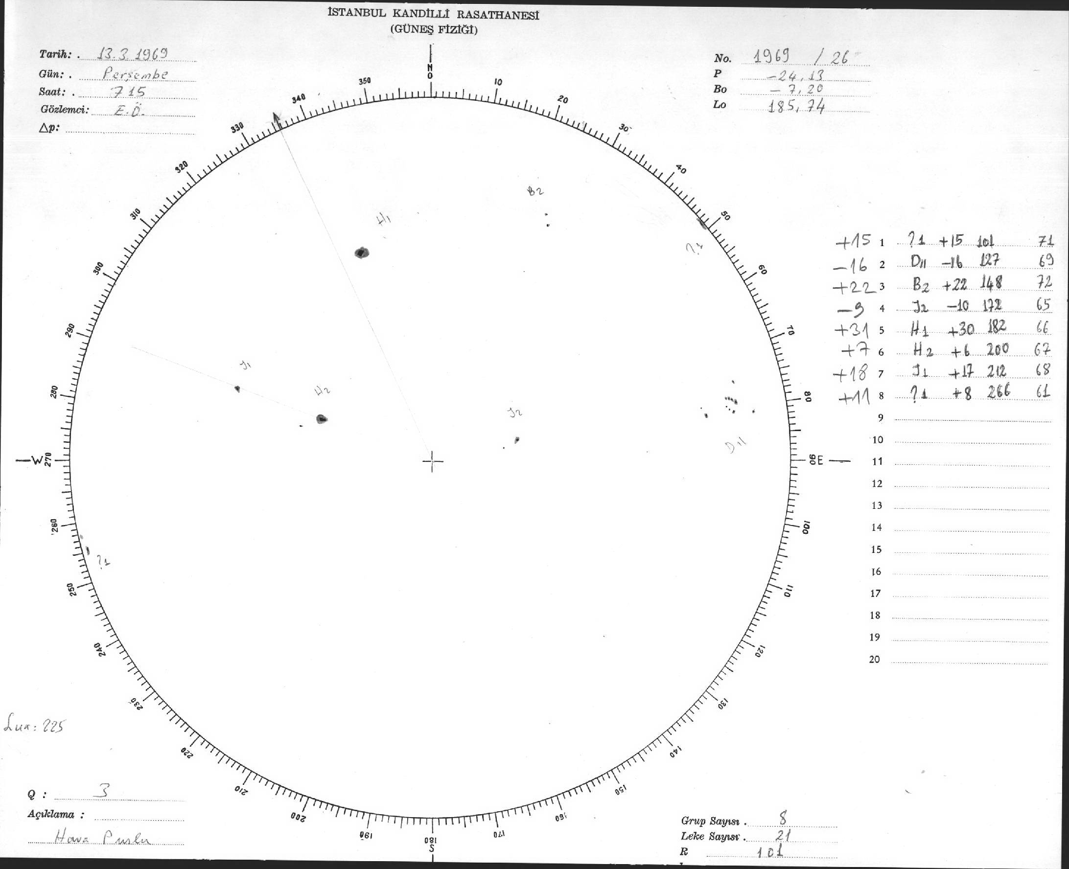 Güneş Lekesi Çizimi - 13.03.1969