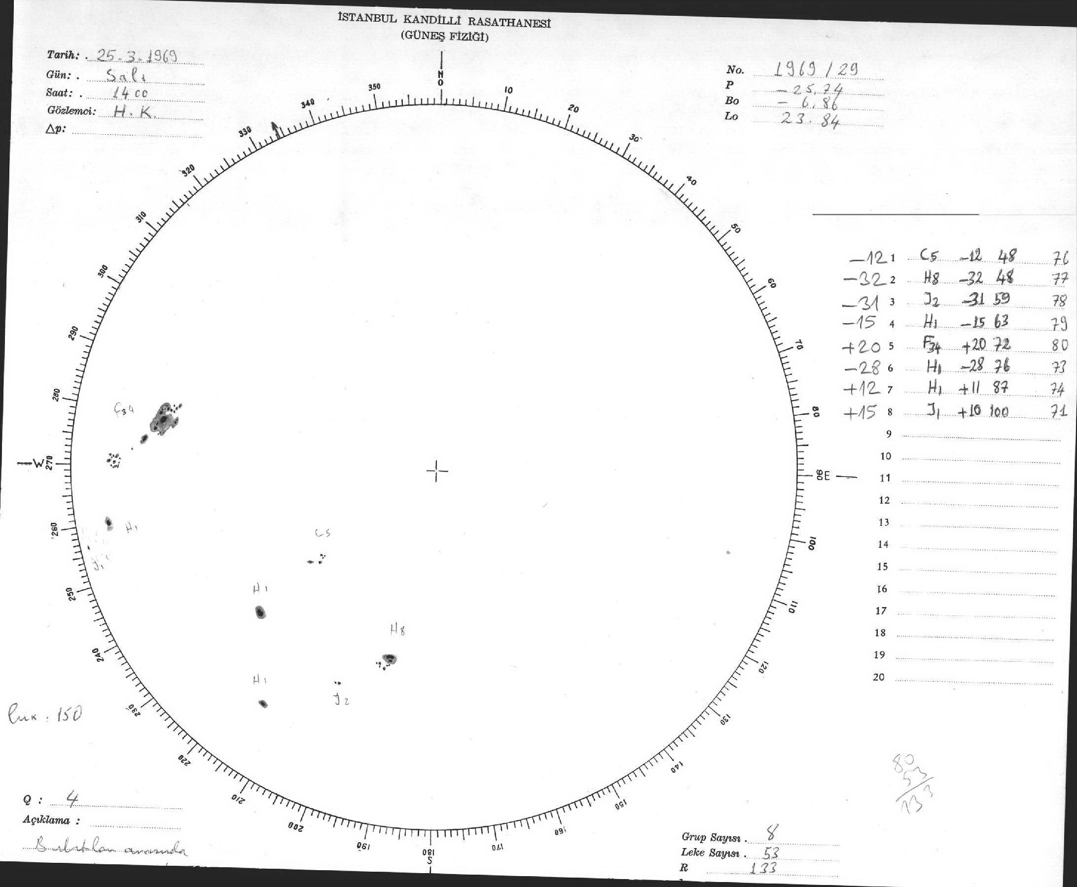 Güneş Lekesi Çizimi - 25.03.1969