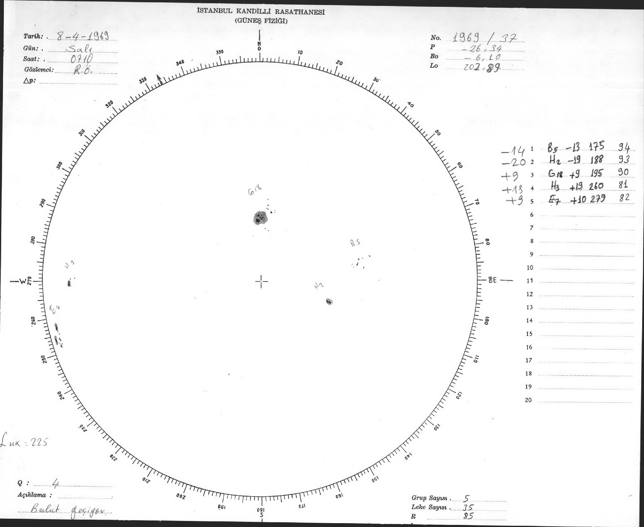 Güneş Lekesi Çizimi - 08.04.1969